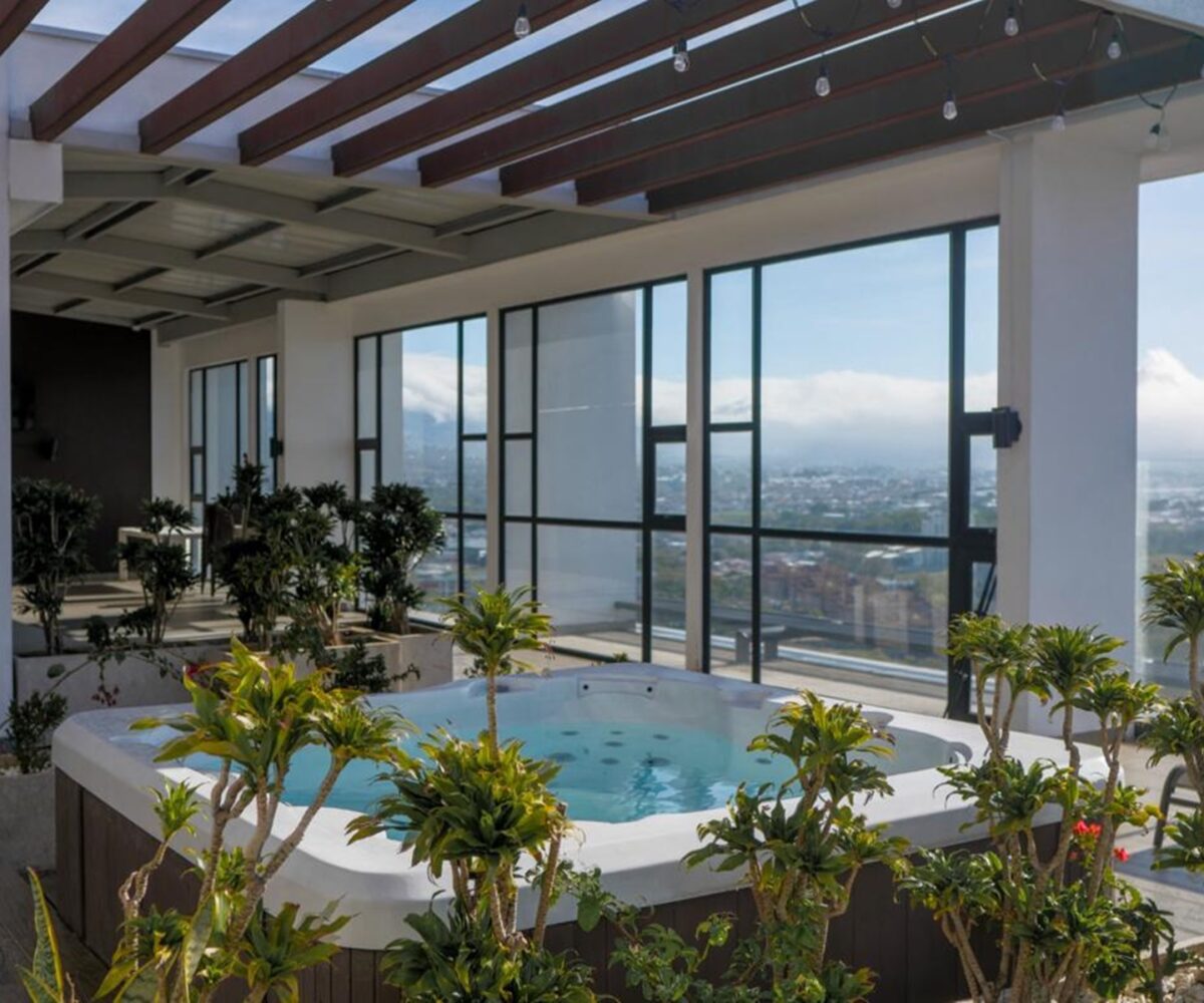 El complejo cuenta con seguridad 24/7, lobby, club house, piscina y jacuzzi, gimnasio, jardines y ascensores, entre otros.