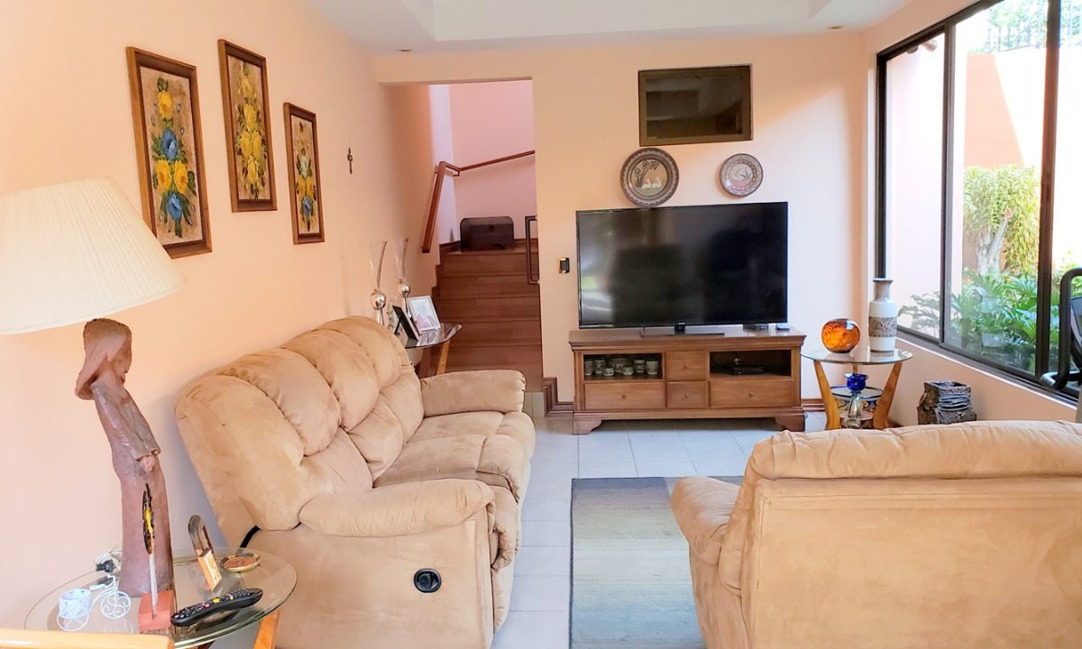 Beautiful independent house located in the vicinity of Nunciatura in Rohrmoser, close to all services and amenities, in a safe and quiet place. This property has a land of 402m2 in which a spacious and comfortable house of 320m2 is built on two floors, with excellent use of spaces and built with first class materials. It features a very large, clear and fresh social area, two half bathrooms, a beautiful and large terrace with access to the beautiful garden, a kitchen with furniture and plenty of storage, laundry area with patio, maid´s quarters and indoor parking for two cars. It also has 3 comfortable bedrooms, 3 full bathrooms, T.V. room and office.  SALE PRICE: $430.000
