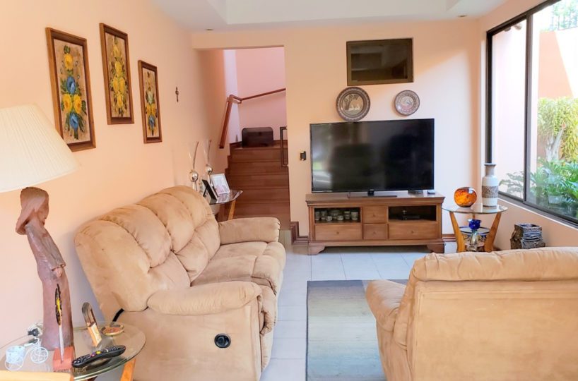 Hermosa casa independiente ubicada en las inmediaciones de la Nunciatura en Rohrmoser, cerca de todos los servicios y amenidades, en un lugar seguro y tranquilo.  Esta propiedad posee un terreno de 402m2 en el cual se edifica una amplia y cómoda casa de 320m2 en dos plantas, con inmejorable aprovechamiento de espacios y construida con materiales de primera.  Consta de una amplísima, clara y fresca área social, dos medios baños, una bella y amplia terraza con salida al hermoso jardín, una cocina con muebles y mucho espacio para almacenar, área de lavandería con patio de tendido, dormitorio de servicio con baño completo y estacionamiento bajo techo para dos automóviles.  Además cuenta con 3 confortables dormitorios, 3 baños completos, sala de T.V. y oficina.