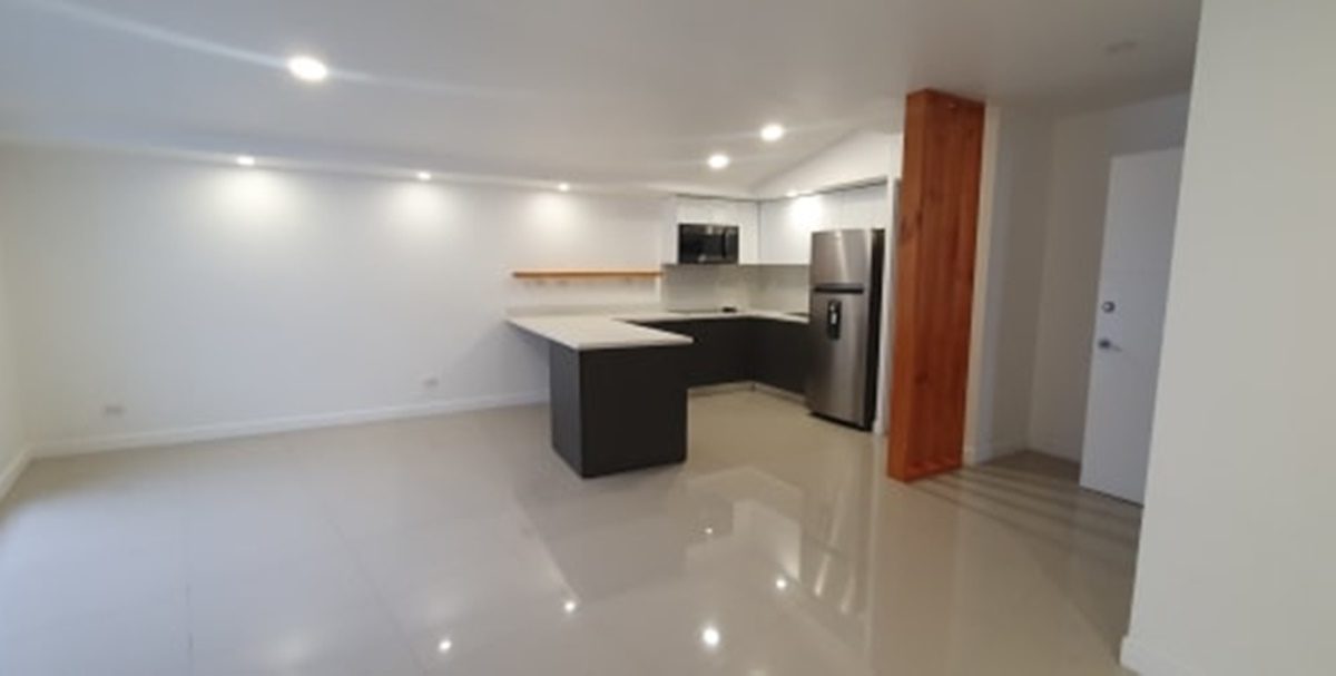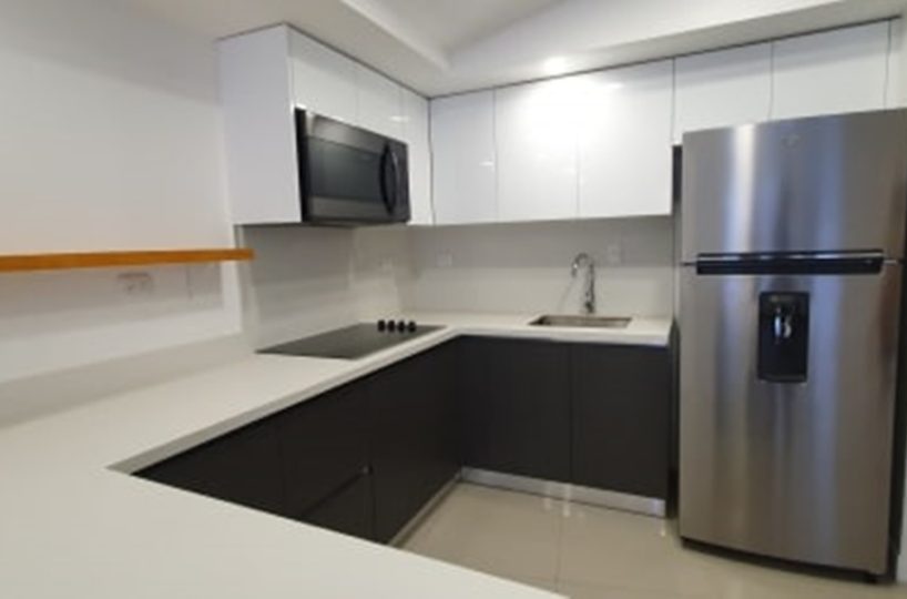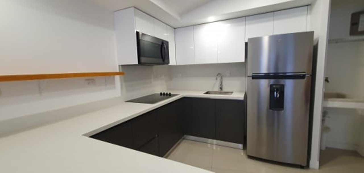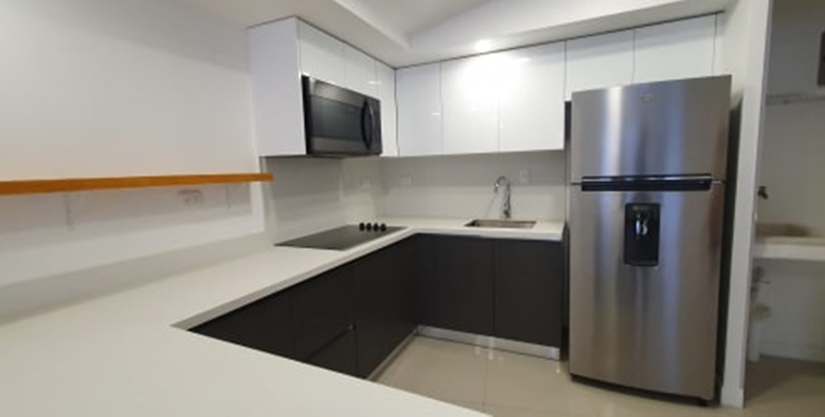 Apartamento nuevo y moderno de ambiente ejecutivo, ubicado en un segundo piso, con excelente iluminación natural. Consta de sala comedor con cocina integrada y con línea blanca en acero inoxidable de excelente calidad, área de lavandería y estacionamiento para 1 vehículo. Adicionalmente ofrece 1 cómodo dormitorio con walk-in closet y 1 baño completo así como sala familiar o de T.V. Agua caliente. Precio de renta negociable. RENTA: $850.00