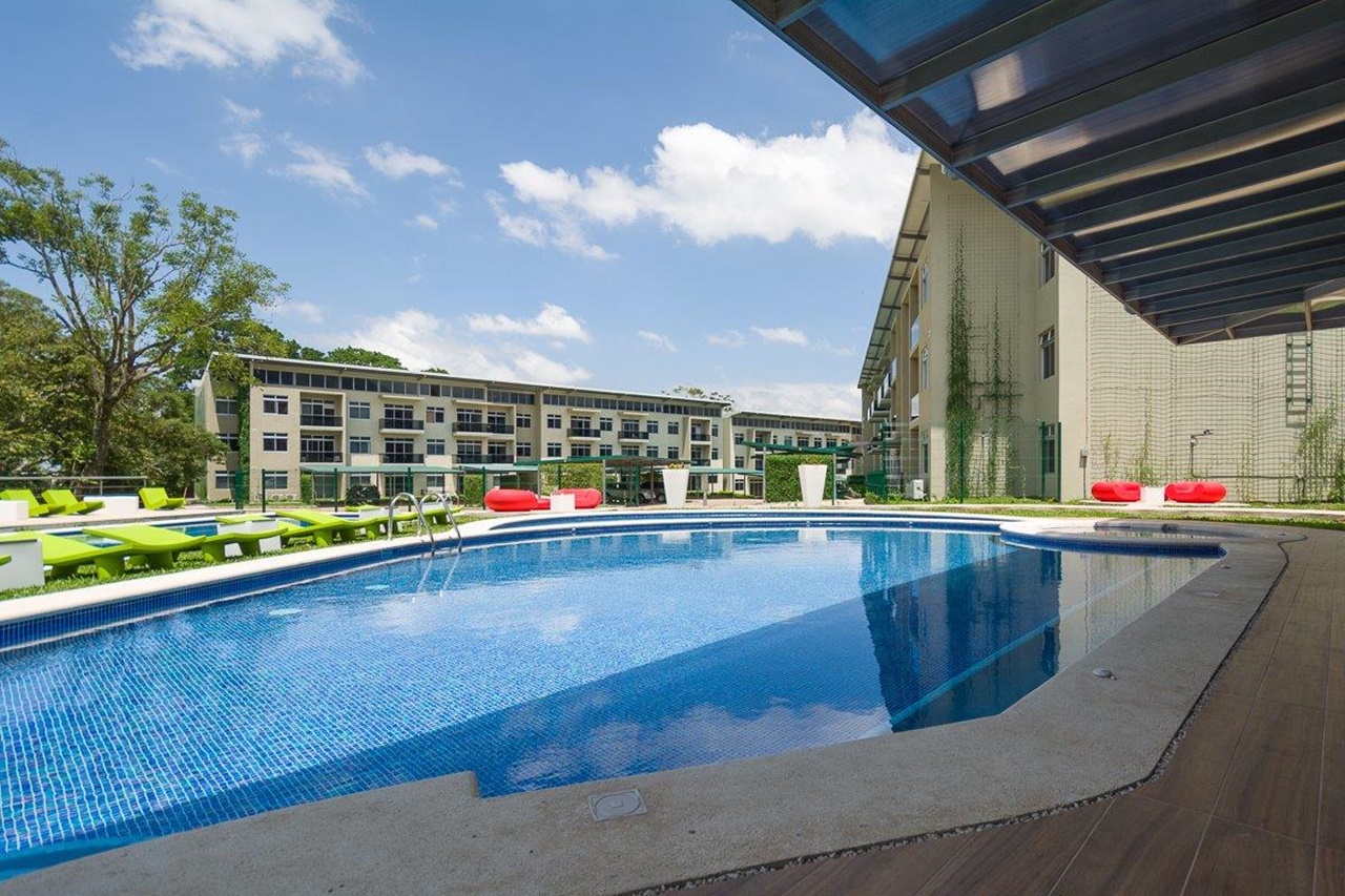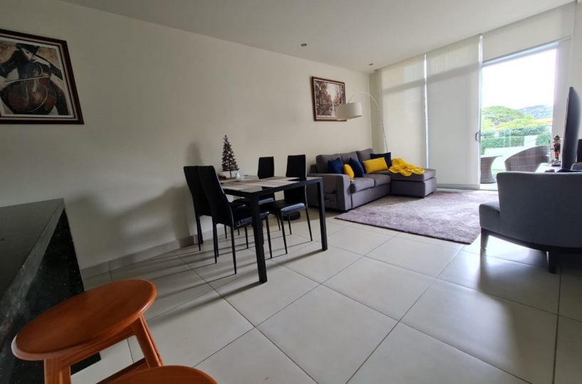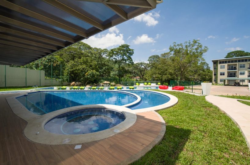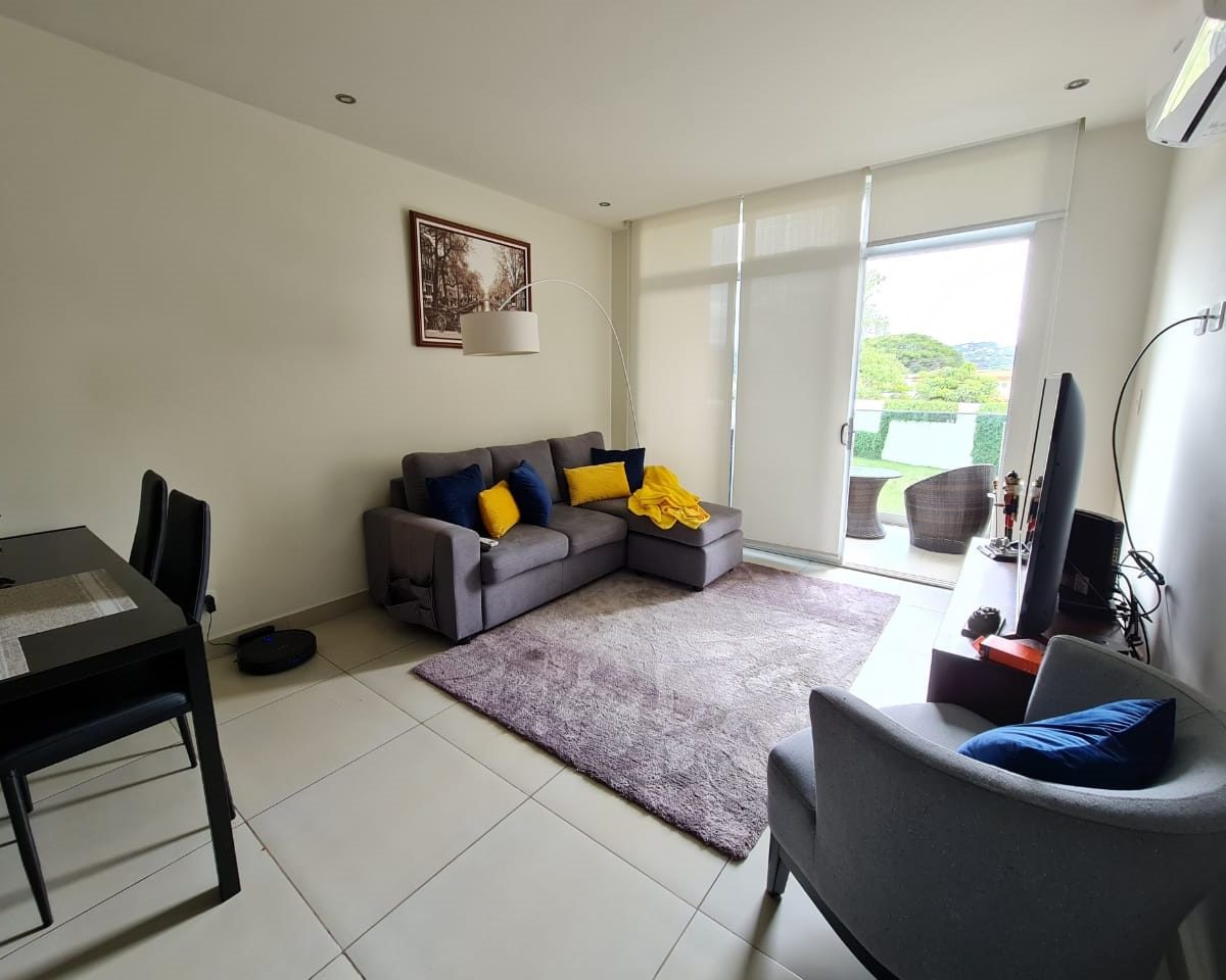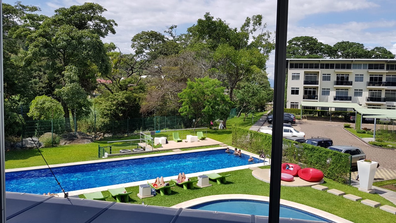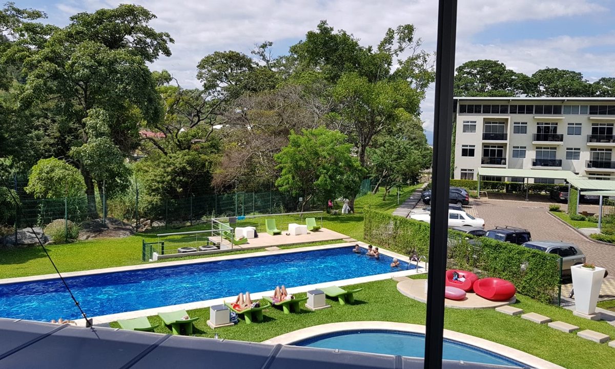 Elegant and comfortable 116.58m2 apartment on one floor, located in the second floor within a vertical condominium in one of the most beautiful areas of Santa Ana, close to all amenities and services in a quiet and safe area. The condominium offers social and sports areas integrated in harmony with nature and designed to provide quality of life: 24/7 security with controlled access, elevators, parking for visitor´s, heated recreational pool and semi-Olympic swimming pool, 2 Jacuzzis, 3 BBQ ranches, playground, cafeteria – restaurant with “room service”, walking paths, gym and tennis court, among others.