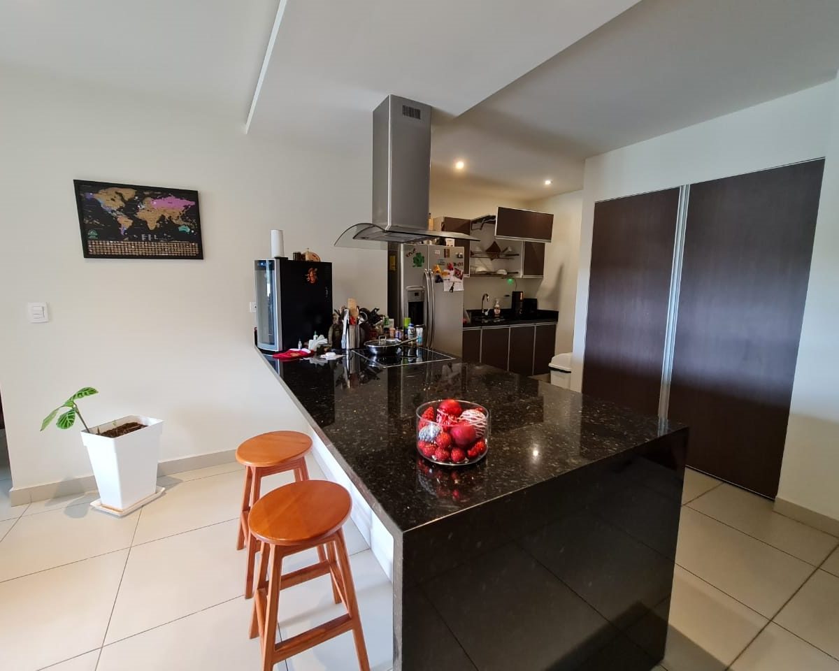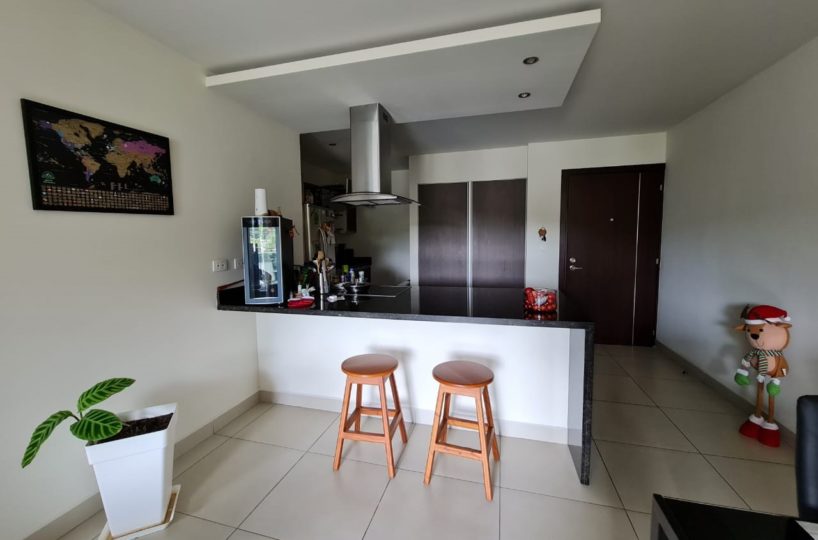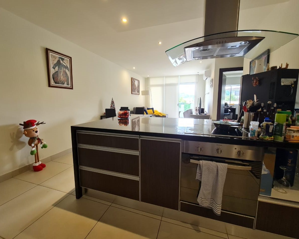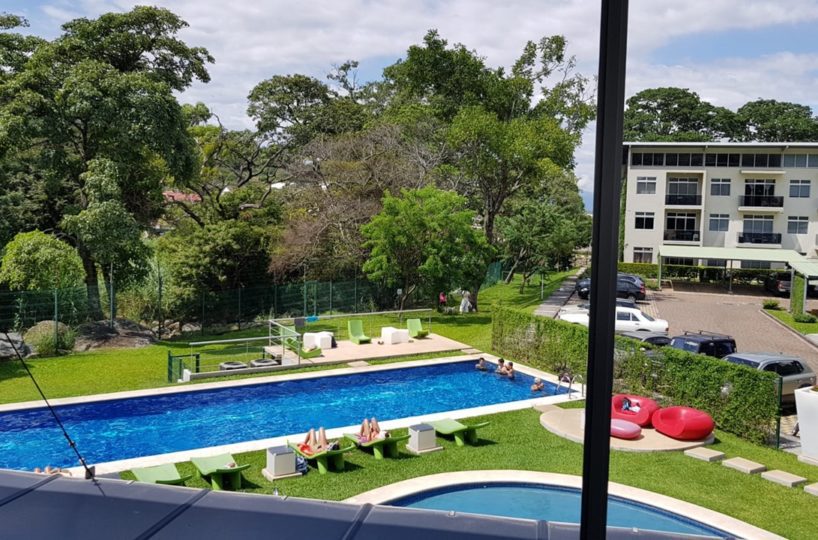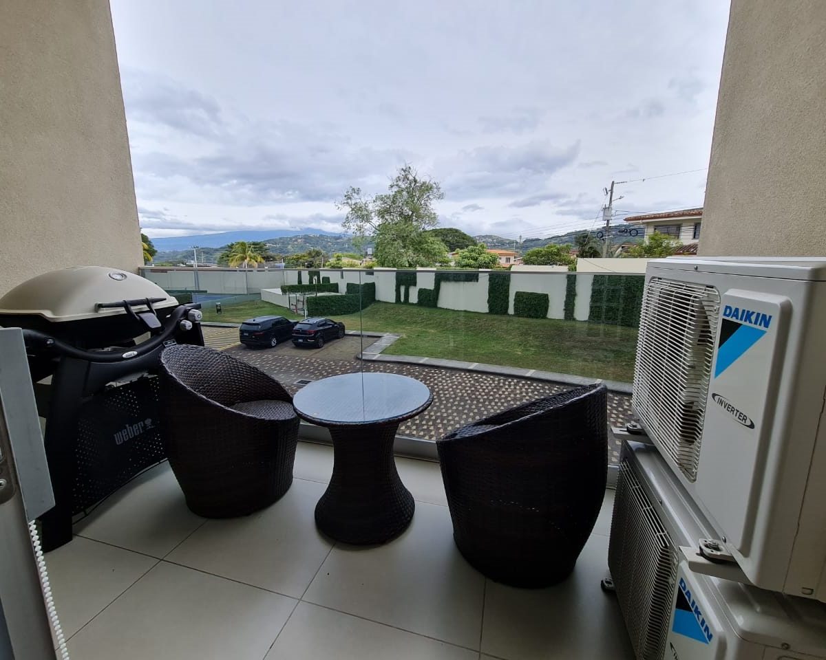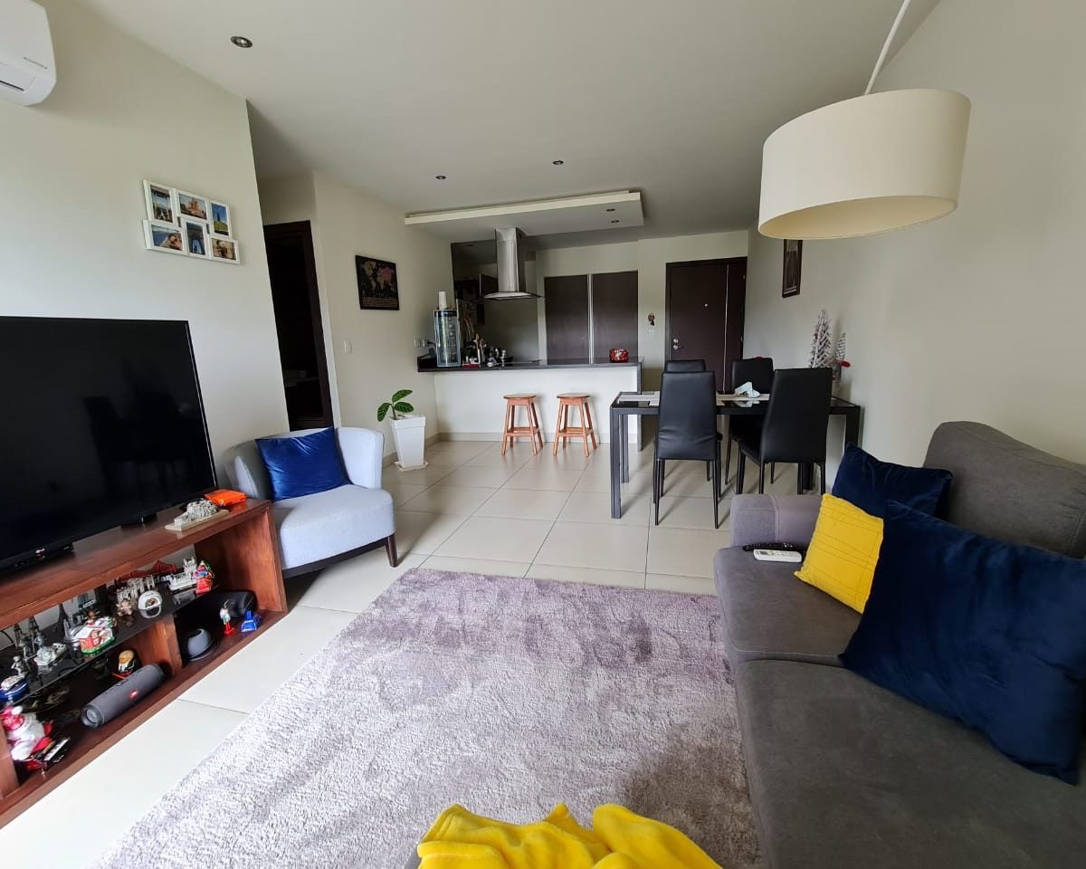 Elegant and comfortable 116.58m2 apartment on one floor, located in the second floor within a vertical condominium in one of the most beautiful areas of Santa Ana, close to all amenities and services in a quiet and safe area. The condominium offers social and sports areas integrated in harmony with nature and designed to provide quality of life: 24/7 security with controlled access, elevators, parking for visitor´s, heated recreational pool and semi-Olympic swimming pool, 2 Jacuzzis, 3 BBQ ranches, playground, cafeteria – restaurant with “room service”, walking paths, gym and tennis court, among others.