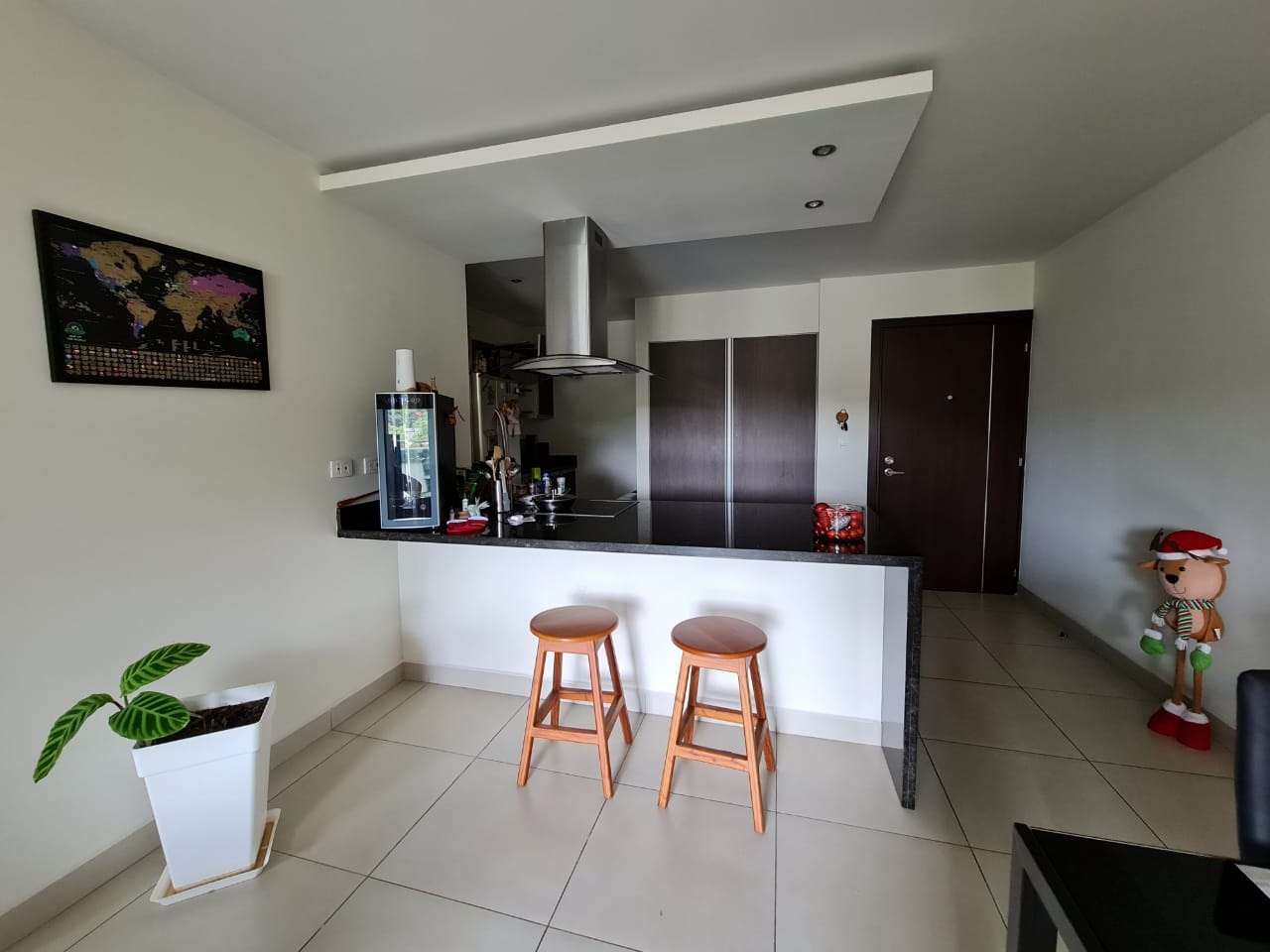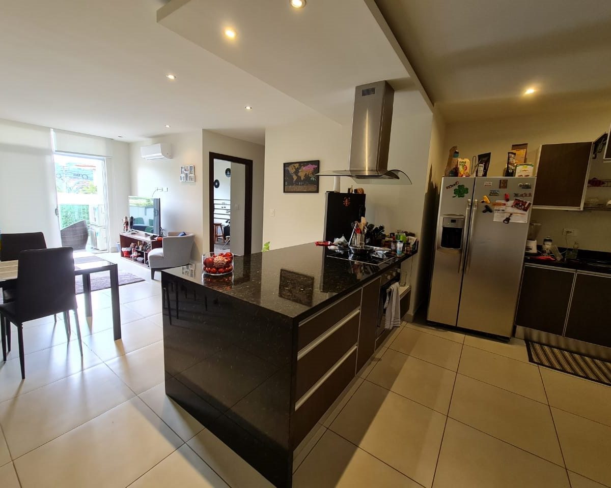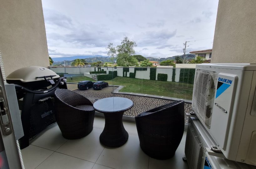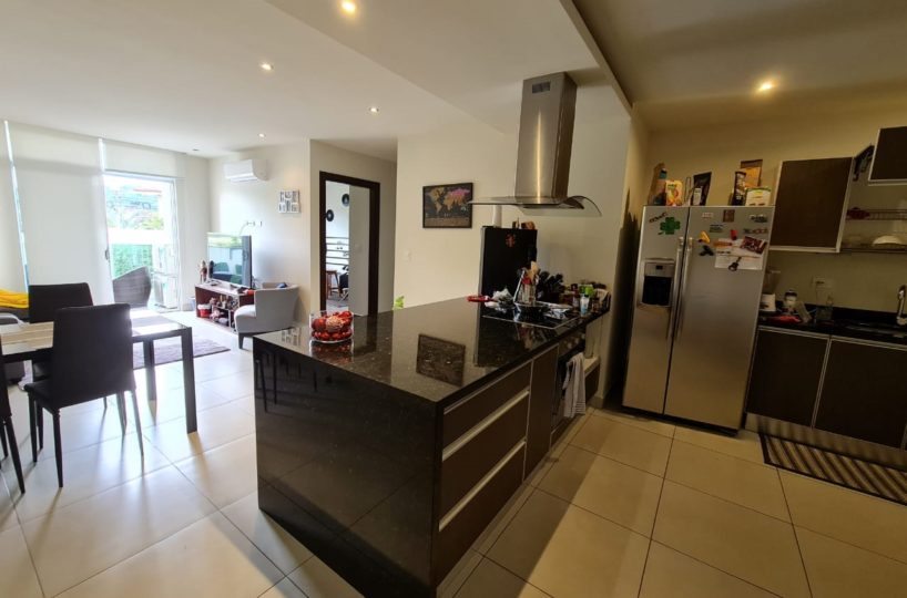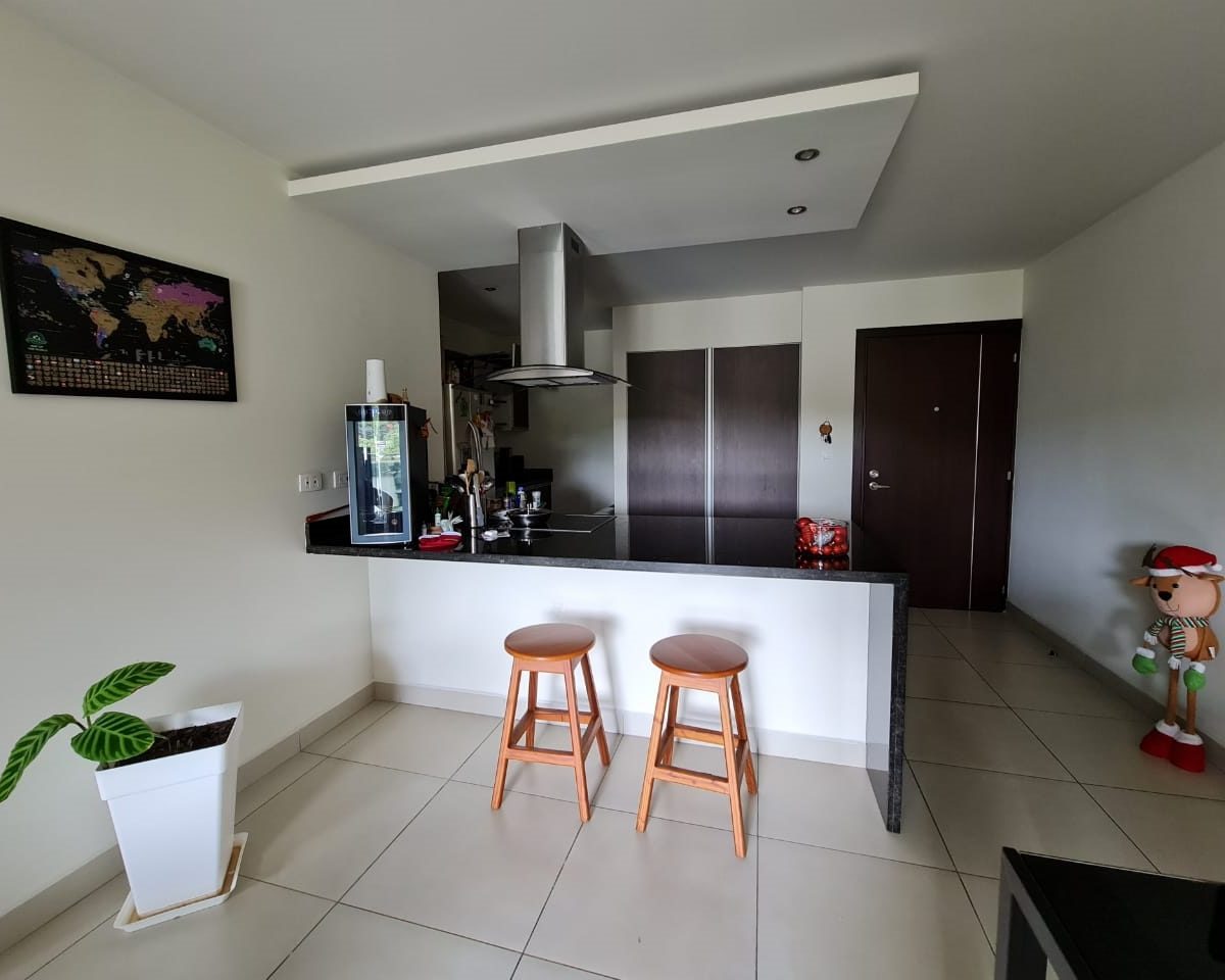 Elegant and comfortable 116.58m2 apartment on one floor, located in the second floor within a vertical condominium in one of the most beautiful areas of Santa Ana, close to all amenities and services in a quiet and safe area. The condominium offers social and sports areas integrated in harmony with nature and designed to provide quality of life: 24/7 security with controlled access, elevators, parking for visitor´s, heated recreational pool and semi-Olympic swimming pool, 2 Jacuzzis, 3 BBQ ranches, playground, cafeteria – restaurant with “room service”, walking paths, gym and tennis court, among others.