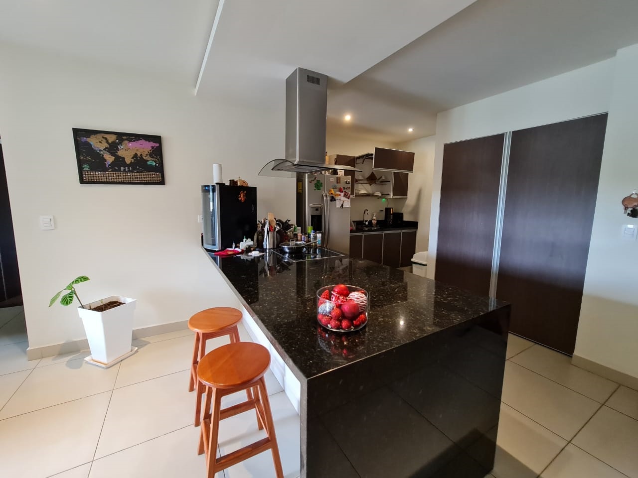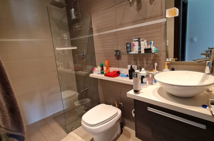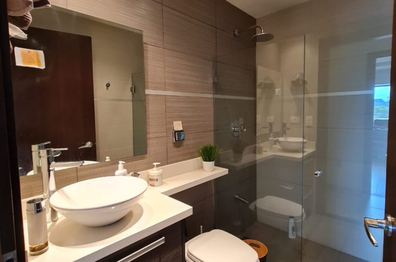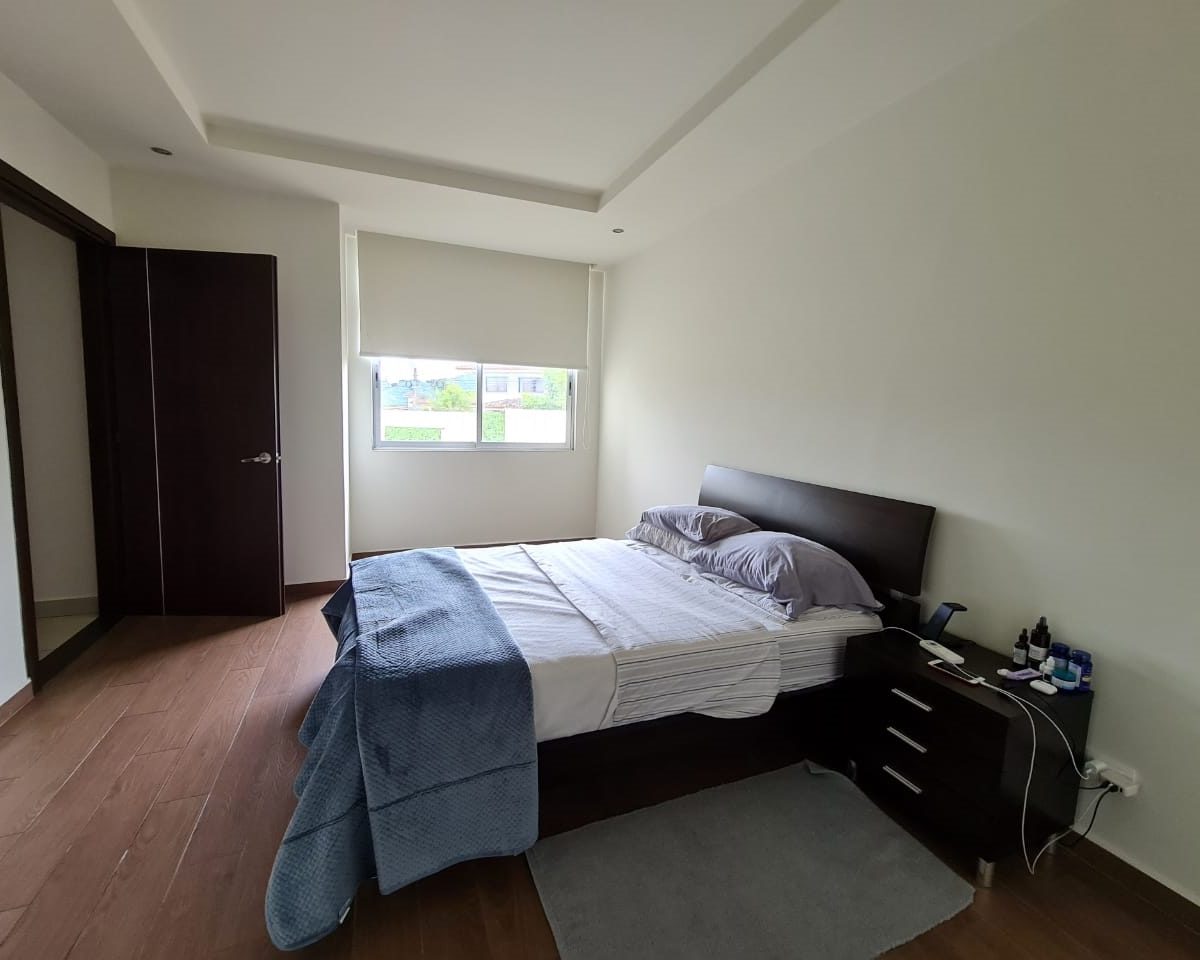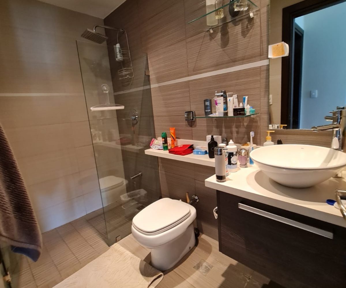 The apartment has fine finishes (porcelain floors, light fixtures, taps, mirrors, tempered glass doors in bathrooms) and high-quality construction materials, as well as well-distributed areas for better use of space. It offers a social area with balcony and lots of natural light, an open concept kitchen with a breakfast bar and stove, laurdry area, 2 comfortable bedrooms and 2 full bathrooms, máster bedroom with walk in closet and private bath, as well as 2 parking spaces and 1 cellar. Includes 2 A / C and “black out” type blinds in bedrooms and living room.