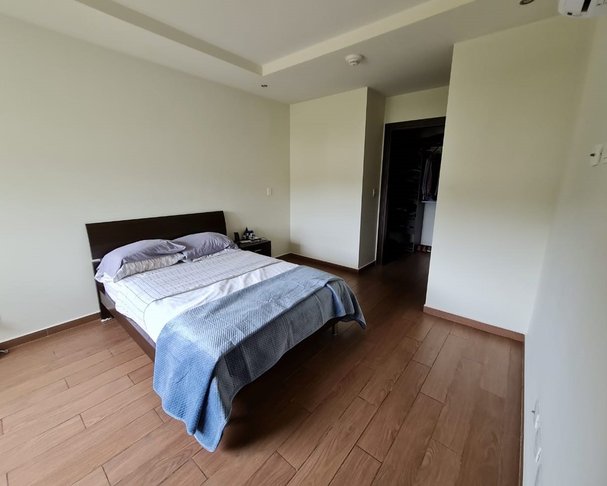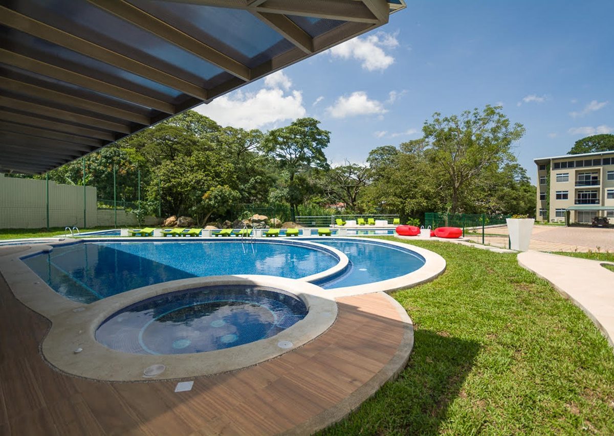 Elegante y cómodo apartamento de 116.58m2 en una planta, ubicado en un segundo piso dentro de un condominio vertical en una de las áreas más bellas de Santa Ana, cerca de todas las comodidades y servicios en una zona tranquila y segura. El condominio ofrece áreas sociales y deportivas integradas en armonía con la naturaleza y diseñadas para brindar calidad de vida: Seguridad 24/7 con acceso controlado, elevadores, parqueo de visitas, piscina recreativa temperada y piscina de natación semi-olímpica, 2 Jacuzzis, 3 ranchos con BBQ, área de juegos infantiles, cafetería – restaurante con “room service”, senderos para caminar, gimnasio y cancha de tenis, entre otros.