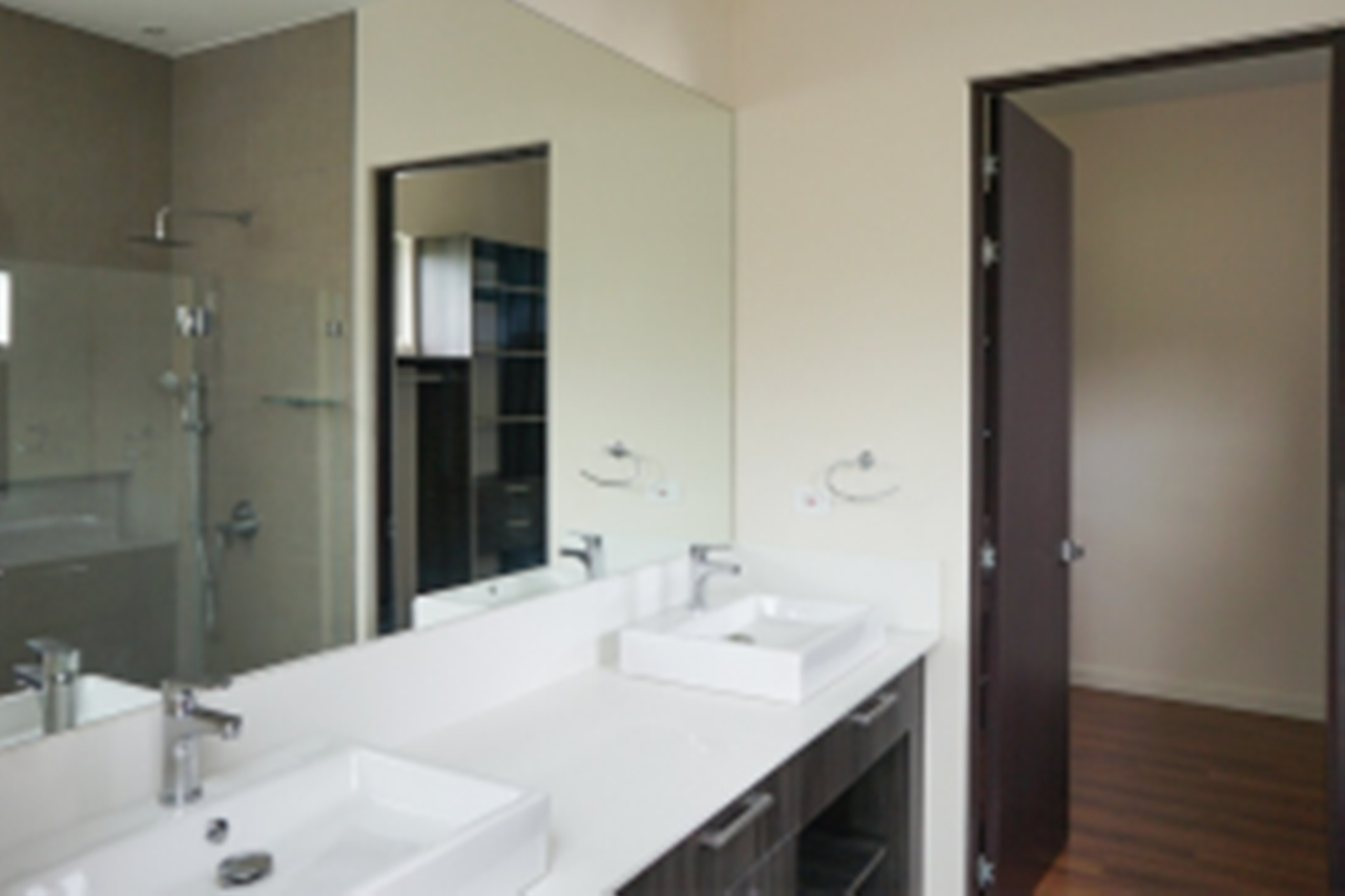 Planta Alta: 3 habitaciones, la principal con walk in closet, aire acondicionado y cortinas. Las dos habitaciones secundarias comparten un baño, balcón y tienen abanico y cortinas. Además ofrece una sala familiar o de T.V. y closet de blancos.