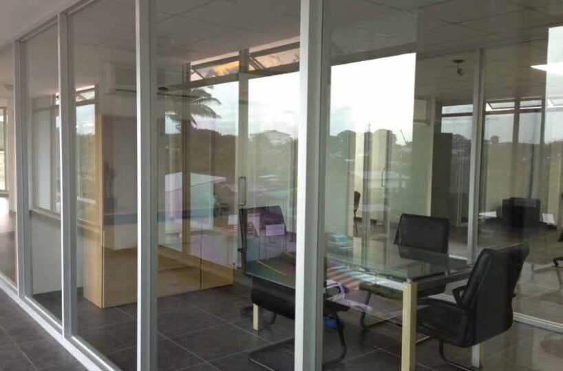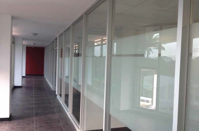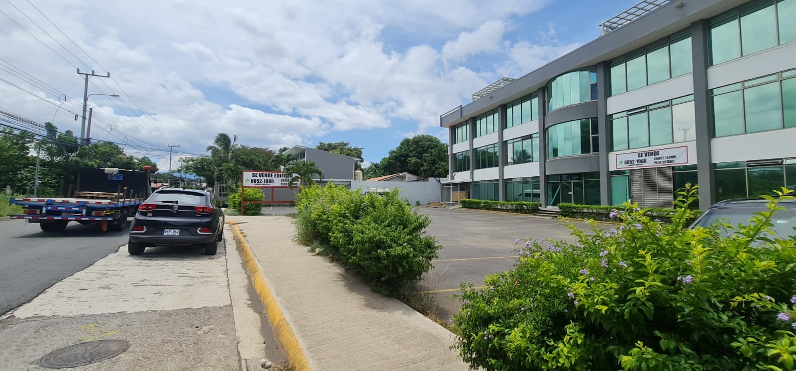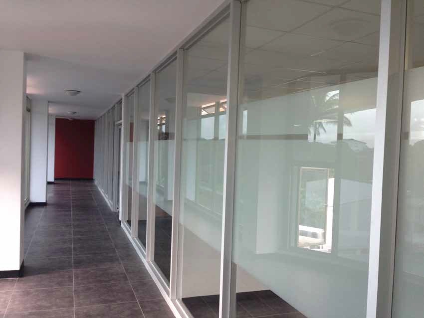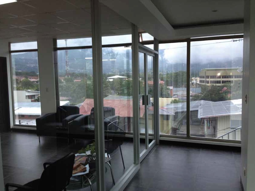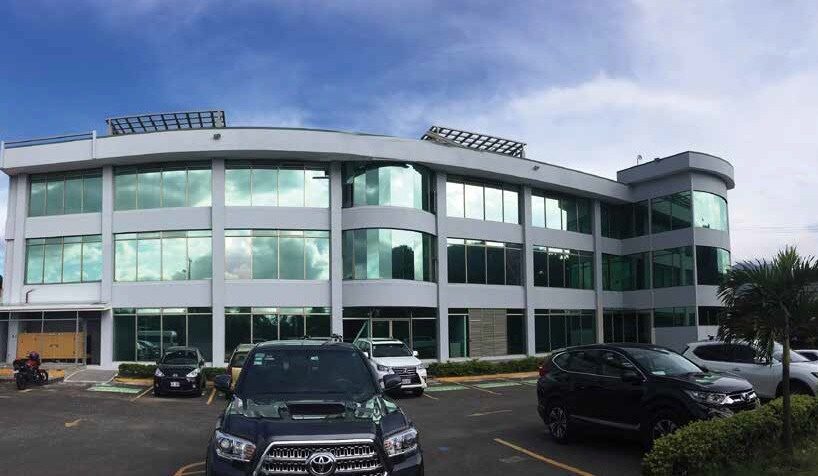 Fue construido hace 9 años en material sólido de acero y concreto y posee grandes ventanales lo que le permite mucha luz natural. Cuenta con ascensor y un amplísimo parqueo, además de 6 servicios sanitarios por piso, entre otras facilidades.
