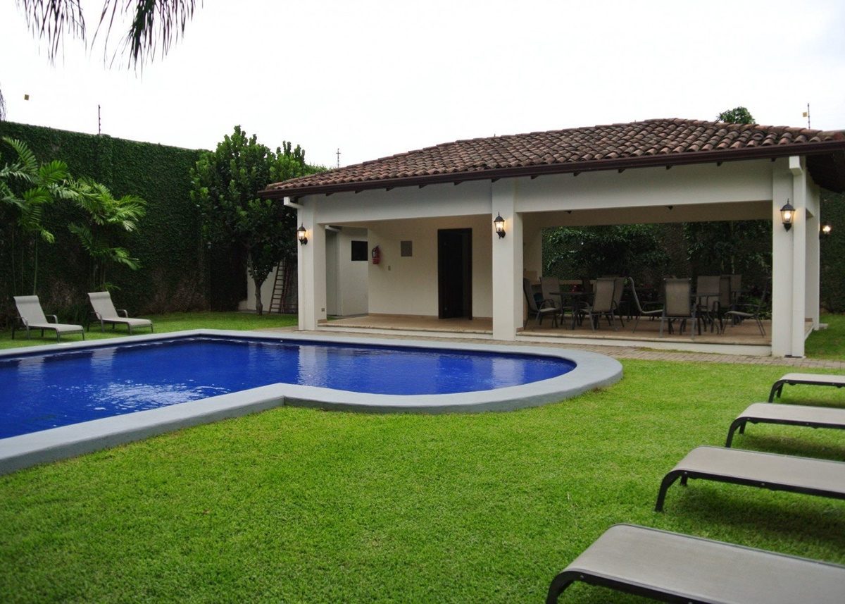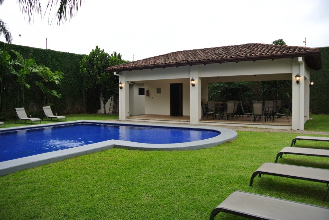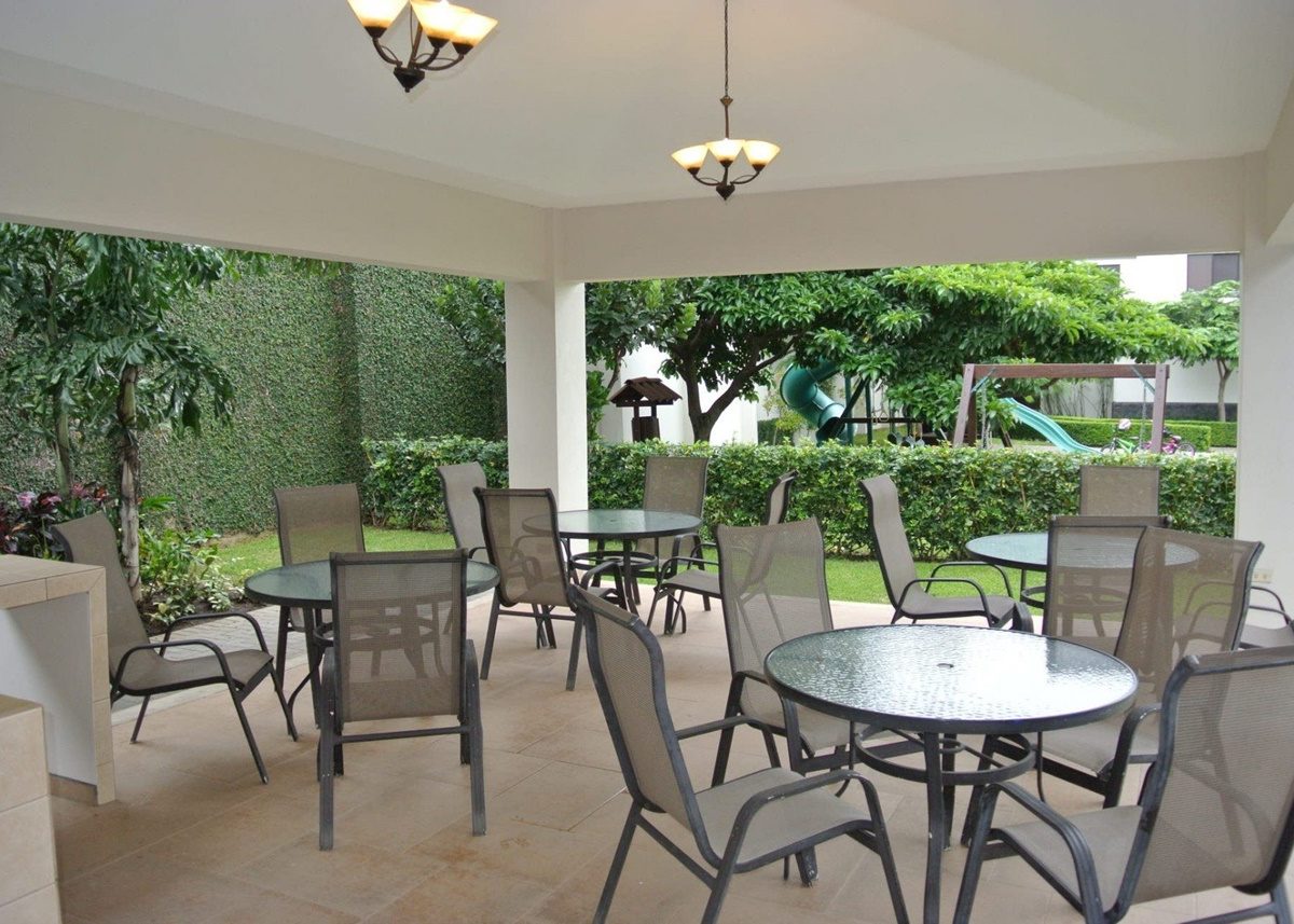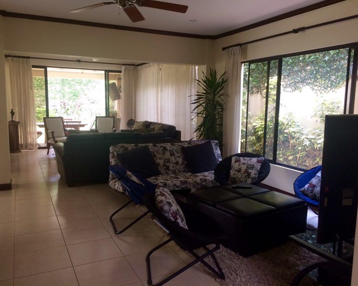 Una preciosa casa, con amplios ventanales que le permiten llenarse de luz natural y frescura, ubicada dentro de un condominio de lujo en el área de Pozos en Santa Ana, cerca de todas las amenidades y servicios, y de muy fácil acceso. El condominio cuenta con seguridad 24/7, estacionamiento para visitas, áreas comunes con piscina, Club House, playground y cancha de fútbol 5. La casa ofrece:
