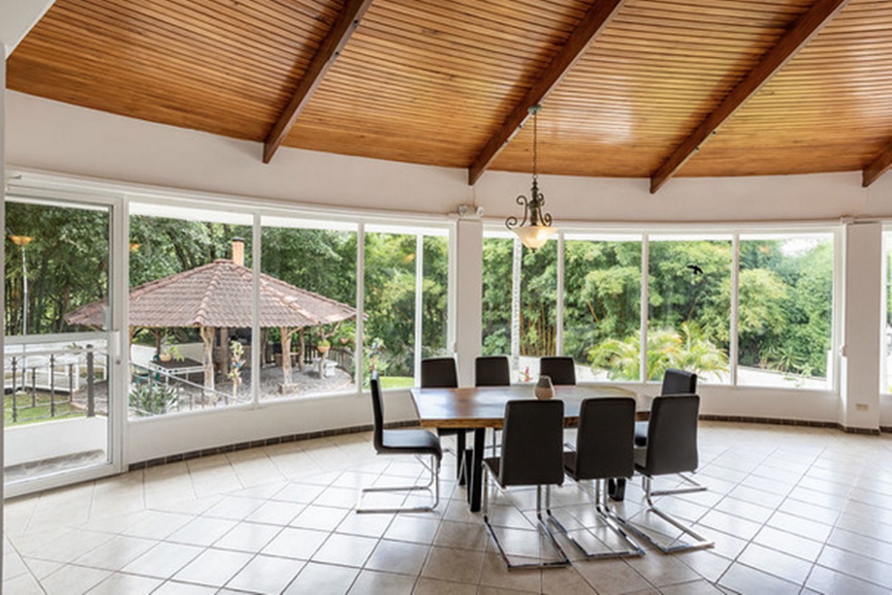 Spectacular property in the mountains of Río Oro. With 36,508.94 m2 and its infrastructure it is a great opportunity for people looking for nature, privacy, freedom and security in a short distance from San José. There is a place to enjoy pure air, unbeatable weather, a spectacular view and live your dreams. The Quinta with its gardens offers the possibility of having animals such as horses, dogs, etc. “La Quinta” offers a huge residence within spectacular, partially broken and undulating terrain, measuring 36,508.94m2. The property is located near Cerros de Escazu, offering a wide view of Montaña del Sol, the Valleys of Río Oro, Juan Santamaría International Airport, the city of Alajuela and the Poás Volcano.