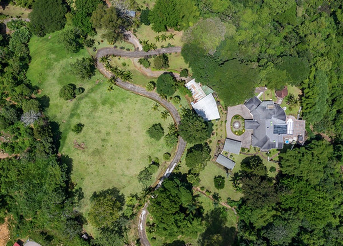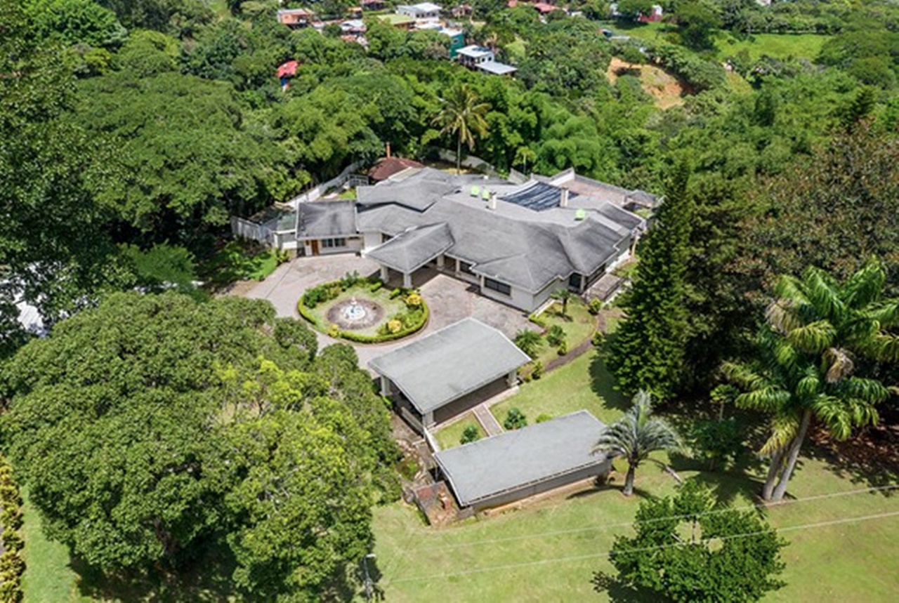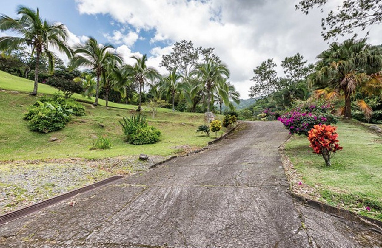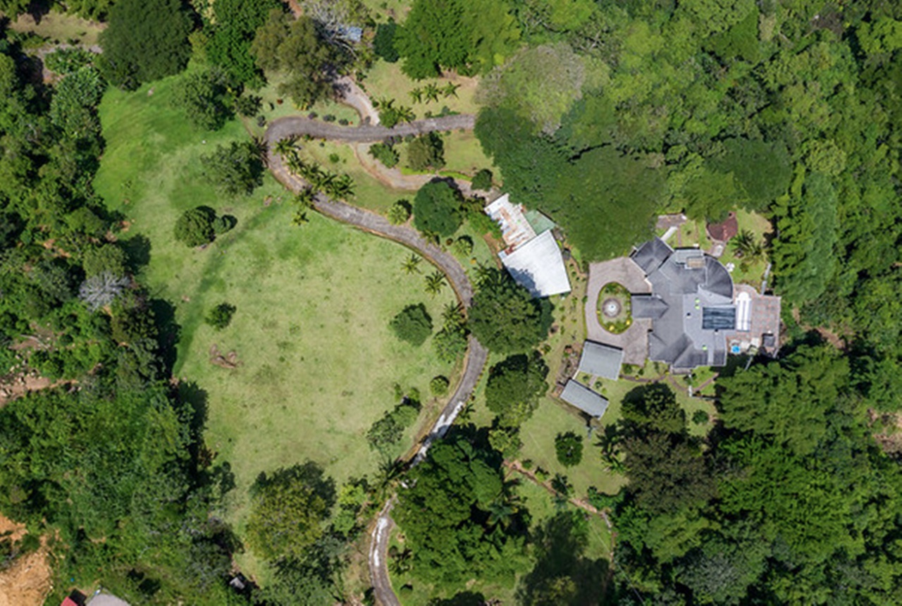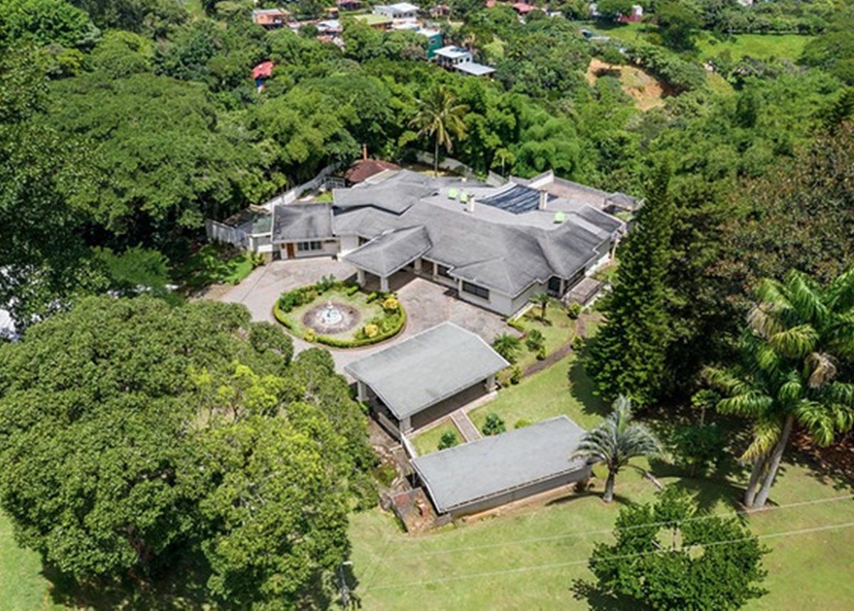 La Quinta ofrece una enorme residencia dentro de un terreno espectacular, parcialmente quebrado y ondulado, que mide 36.508.94m2. La propiedad se encuentra ubicada en las cercanías del Cerro de Escazú, ofreciendo una amplia vista hacía Montaña del Sol, los Valles de Río Oro, el Aeropuerto Internacional Juan Santamaría, la ciudad de Alajuela y el Volcán Poás. Posee caminos internos con pavimento y cunetas de concreto de media caña y algunos con piedra quebrada, tendido eléctrico con transformador de 25KW, líneas telefónicas fijas, excelente recepción de señal de celulares, dos pozos profundos de agua con tanque de almacenamiento de 12,000 litros, dándole un gran potencial. La quinta no es visible desde la calle; es un refugio de total privacidad y de mucha naturaleza. Se considera la zona muy tranquila y segura.