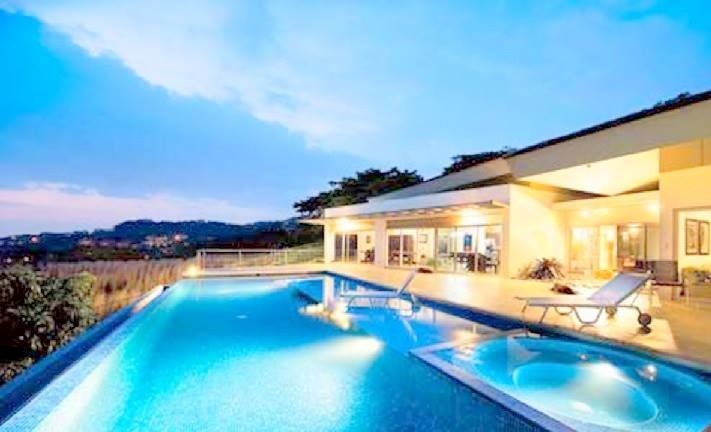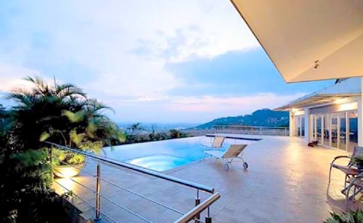 - Terraza y piscina infinita con jacuzzi y áreas verdes