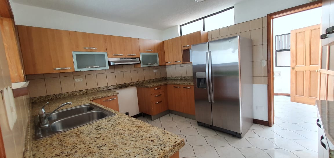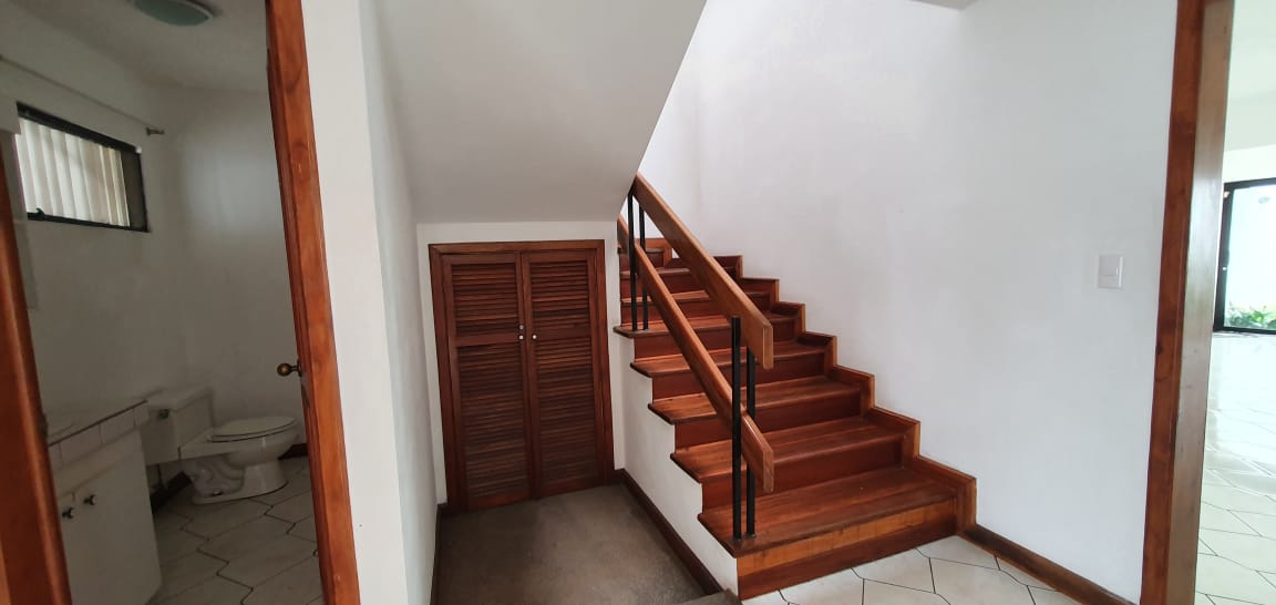 This spacious house is located in the residential Trejos Montealegre, ideal place to live, due to its proximity to shopping centers and medical services such as Multiplaza and Hospital Cima, as well as excellent schools and amenities. The property has a lot of 272m2 and a 293m2 construction on two floors, optimally distributed to take advantage of spaces, with ceramic and laminate floors, fine finishes. The house has a large and clear social area with a terrace that gives access to a beautiful garden, bathroom for visitors, kitchen (recently remodeled) with fine furniture. It also has laundry area and service room with full bathroom. On the second floor there are 4 bedrooms and the T.V. room very comfortable and big. The master bedroom has walk in closet, Pergo floors, bathroom with tub, shower and 2 sinks, plus a beautiful view of the mountains of Escazu and the park in front. The other three rooms share a bathroom. It also has a garage for 4 cars.