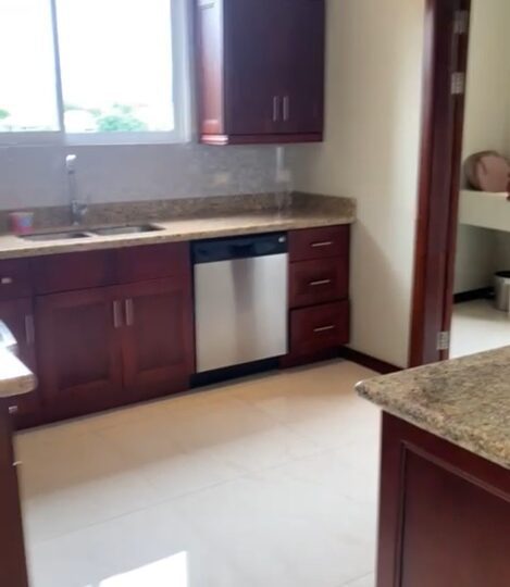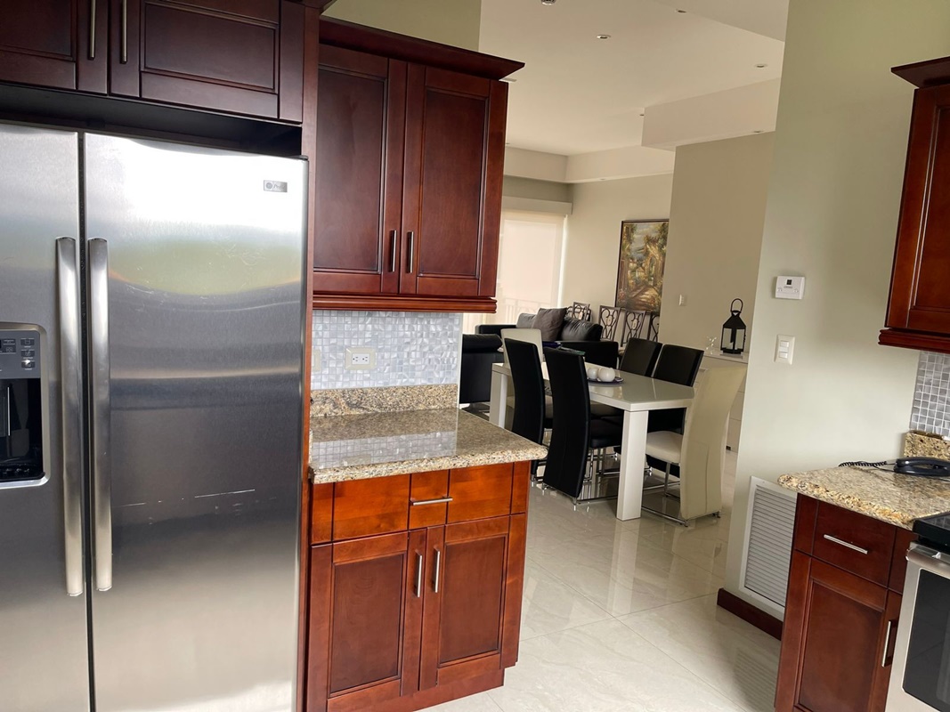 La cocina es independiente , con lindos muebles de granito y muebles de fina madera.   Bodega, lavandería. Estacionamiento para 2 carros.