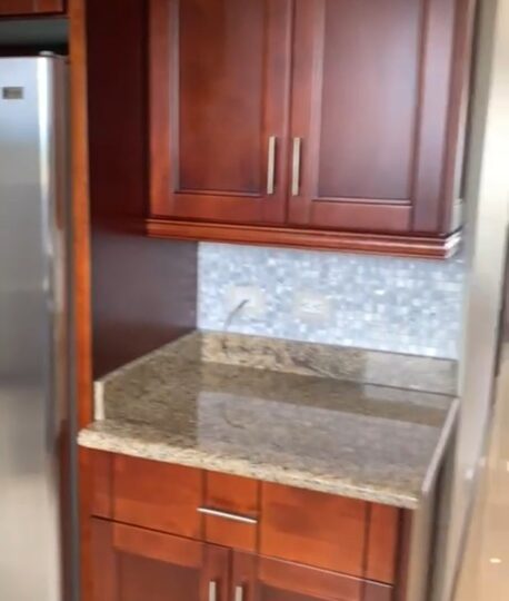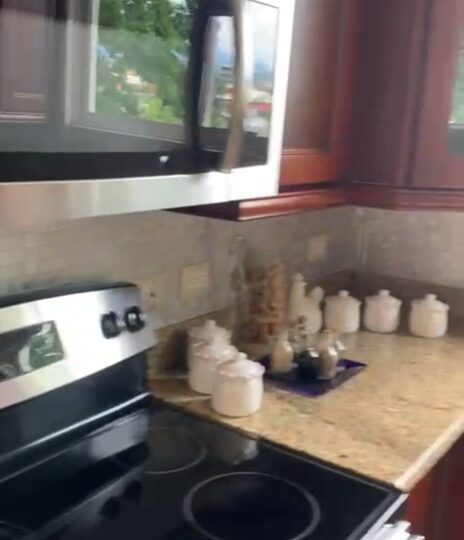 The kitchen is independent, with beautiful granite furniture and fine wood furniture.
