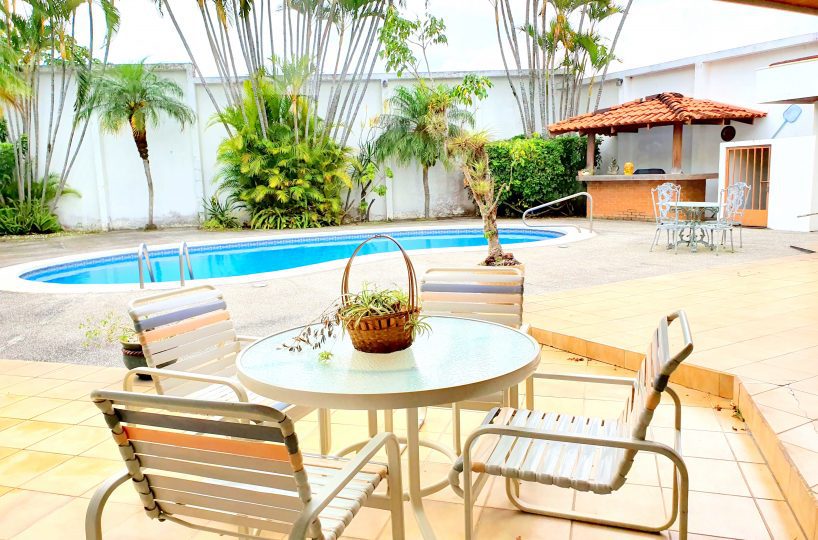 Además en el área de la piscina hay un bar en la zona, baños , y unida una gran terraza que se comunica a la sala y comedor…