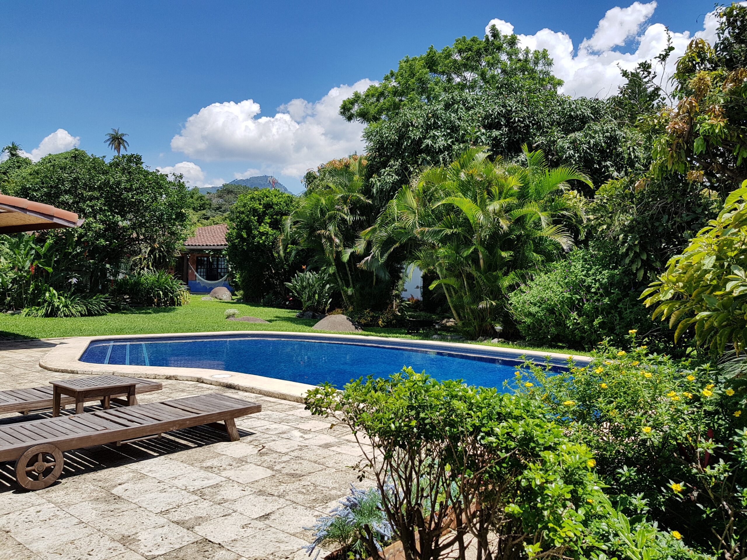 The property has: – One-story main house, which opens to a beautiful pool, with sundeck and dressing area.