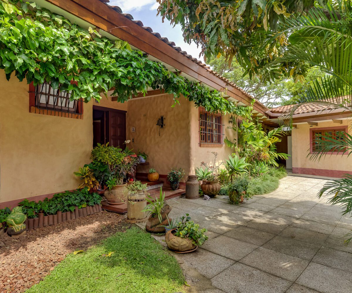 La casa es del estilo colonial, con exterior en estuco, tejas de barro y detalles con acento europeo