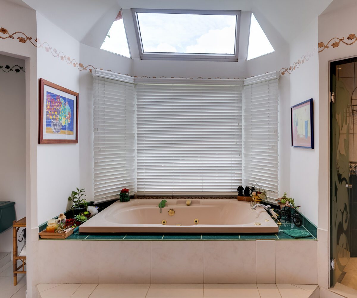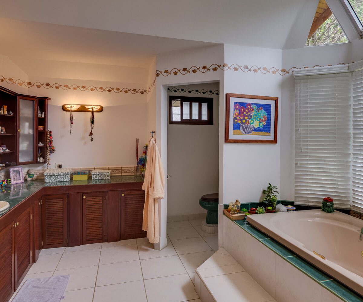 – Al final del pasillo se encuentra la habitación principal que tiene 2 walking closets y un bellísimo baño de inspiración francesa, con bañera de hidromasaje. Unas hermosas puertas dan acceso directo a la terraza y al jardín, desde esta habitación.