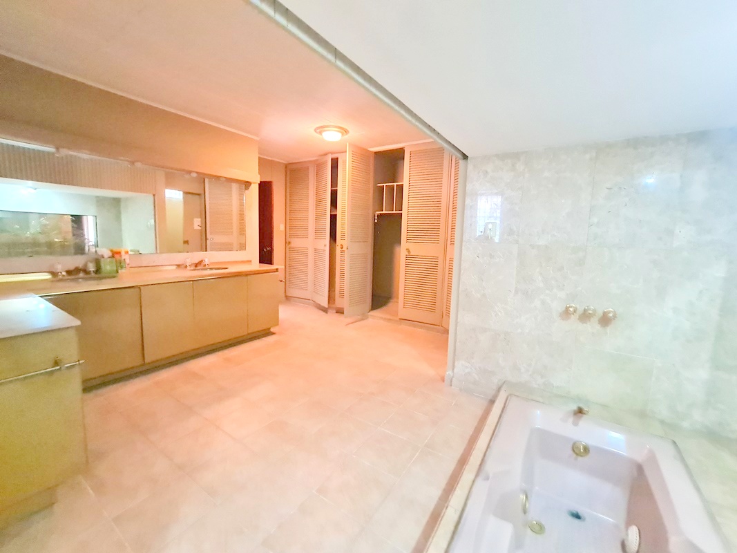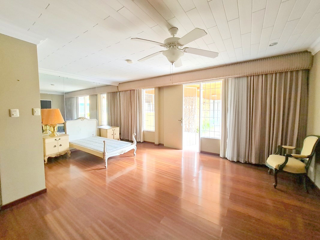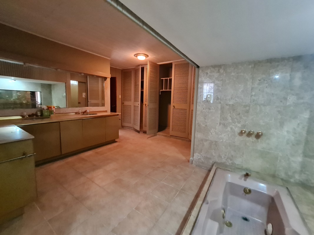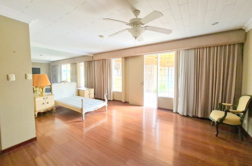 It has 3 bedrooms each with its own private bathroom. Very spacious master. Games room in messanine. Office. 2 maid´s quarters and bathroom. Large laundry.