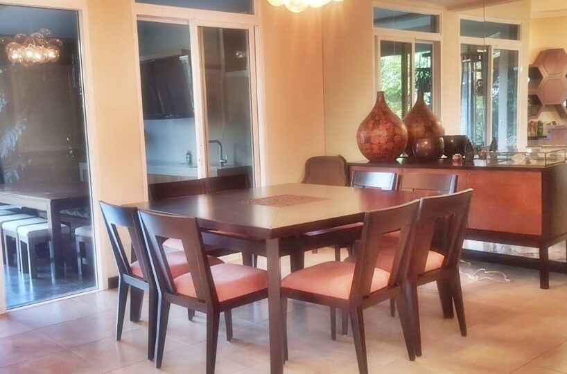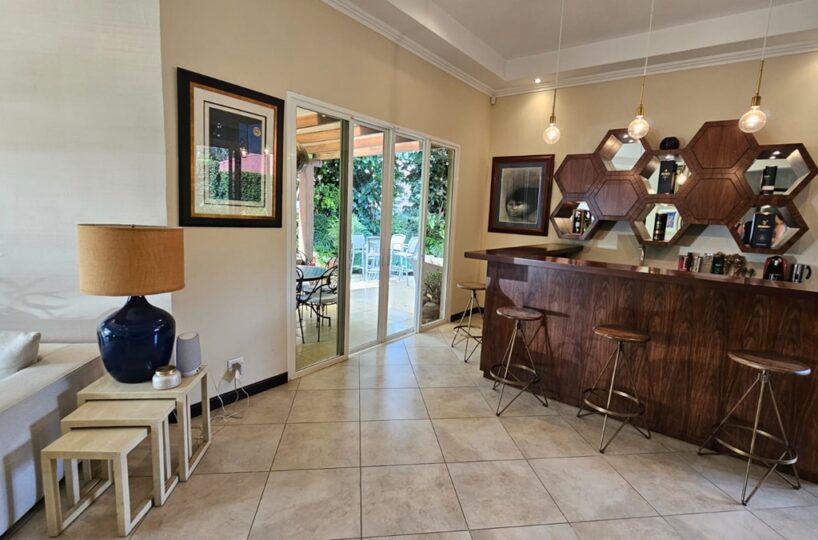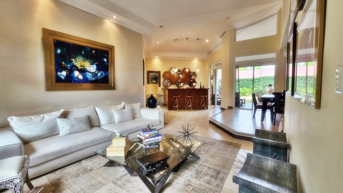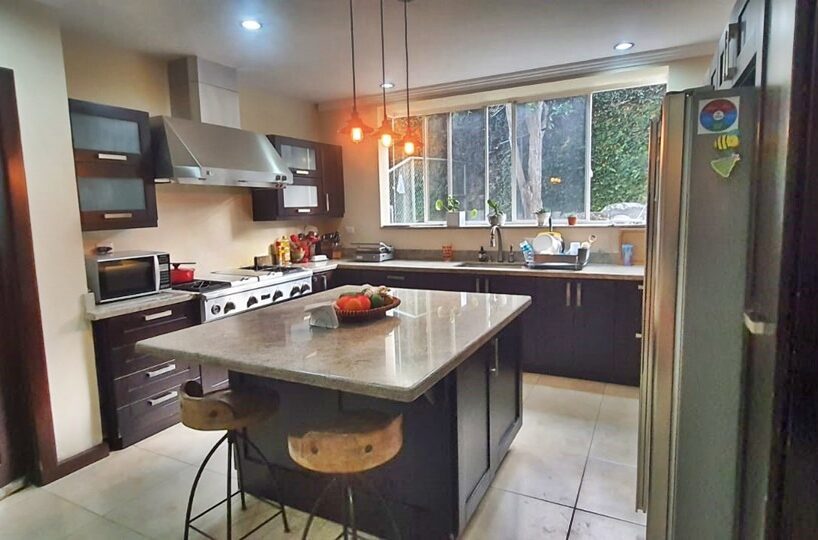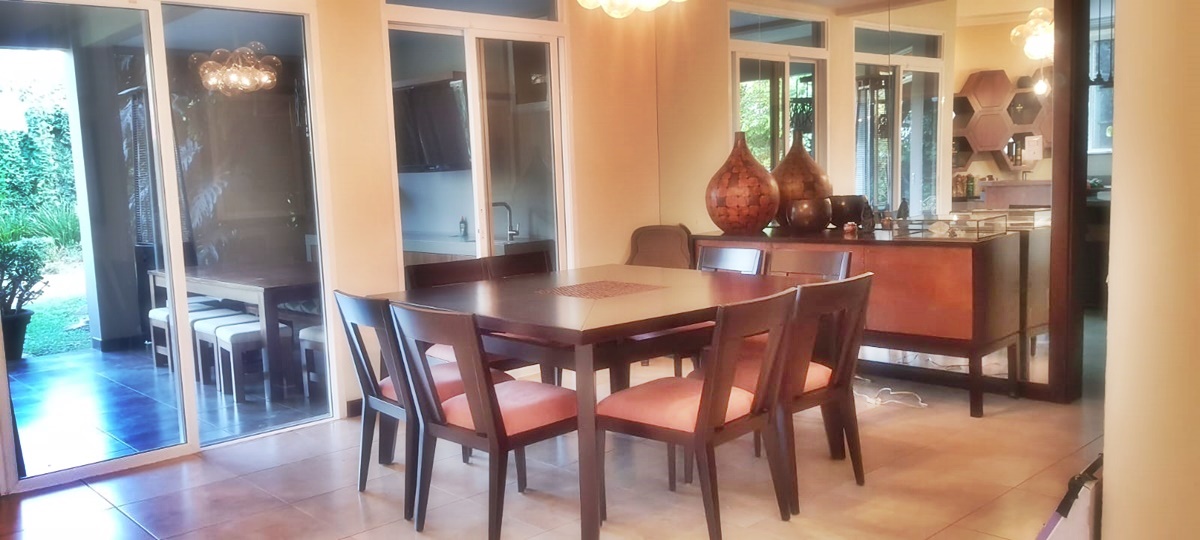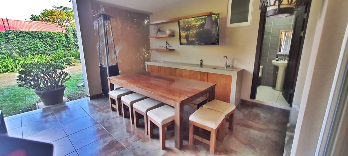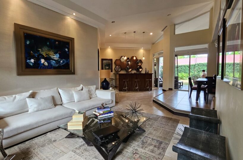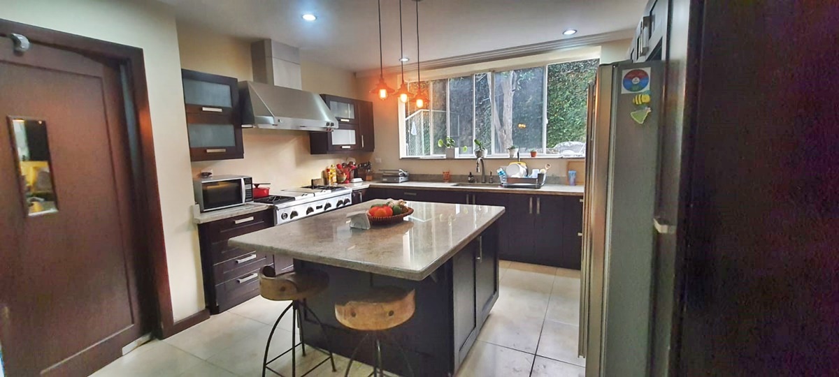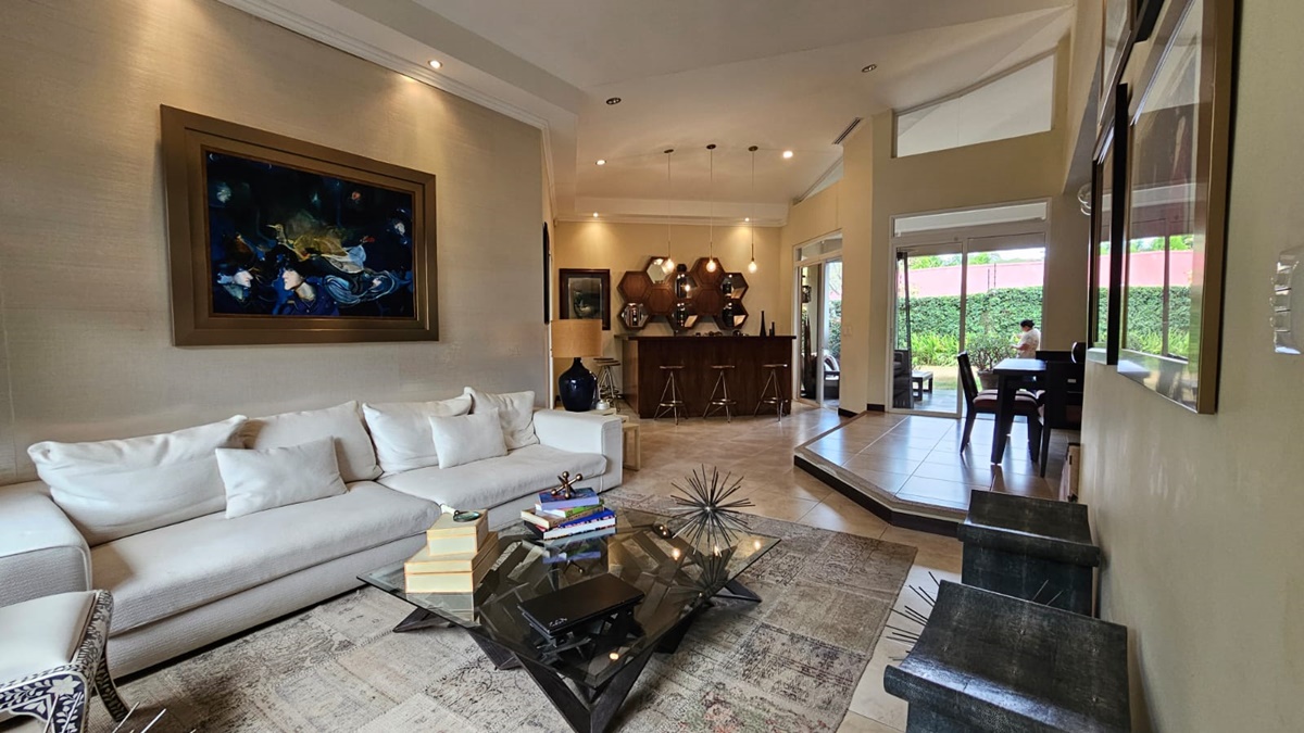 Esta casa, construida en 2011, en condominio, está llena de espacios amplios e iluminados. Cuenta con 3 dormitorios, el principal con 2 walk-in closet y baño privado, los otros dos con excelente tamaño y baño compartido. En planta baja cuenta con sala, comedor, bar, cocina, oficina, 2 medios baños, área de pilas y cuarto de servicio con su propio baño. Sus áreas sociales son extraordinarias, amplias e iluminadas. Cuenta con amplia área de sala y comedor, que además incluye una bella zona de bar. Ofrece dos terrazas, una de ellas con wet bar. y la otra con un fire pit. El jardín es muy amplio y rodea toda la casa. Amplia cocina con isla de gran tamaño. Cuenta con cochera para 2 vehículos bajo techo y espacio para parquear al menos 5 vehículos más.