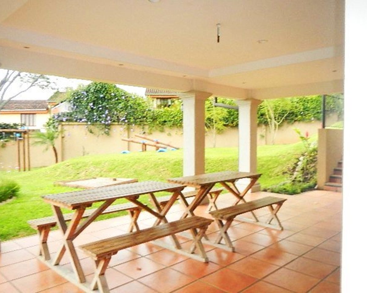 El condominio ofrece piscina, área de juegos, área de barbacoa, estacionamiento para visitantes y seguridad las 24 horas.