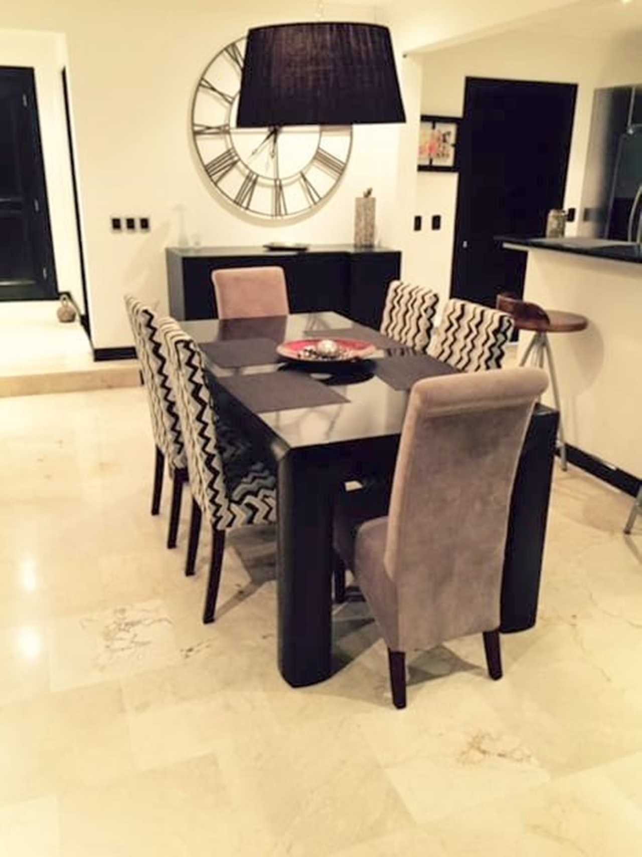 Linda cocina abierta con mostrador para  desayuno, despensa.