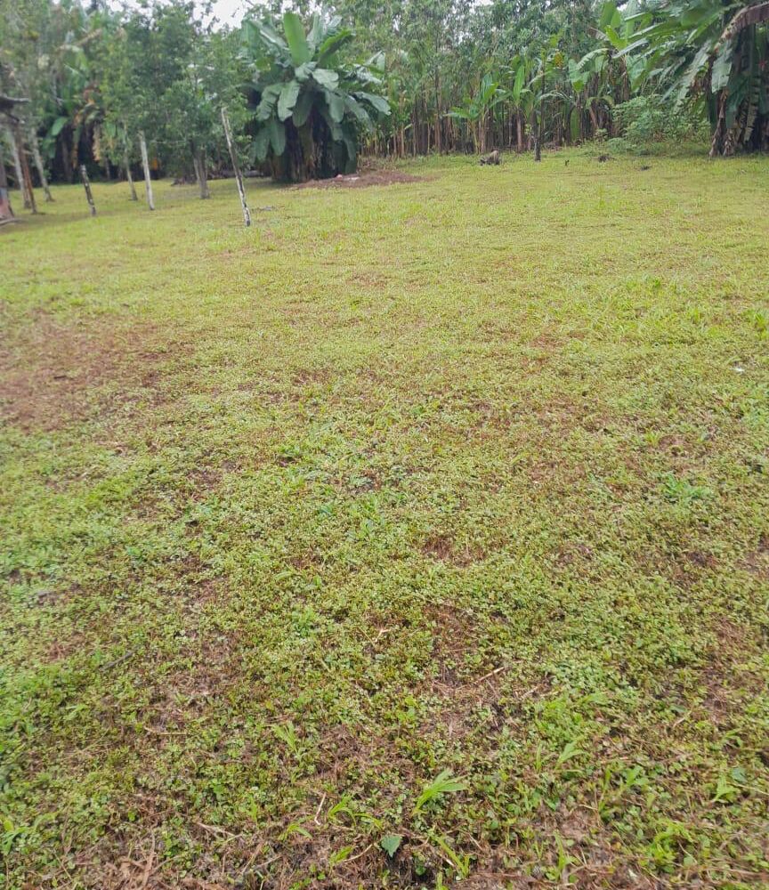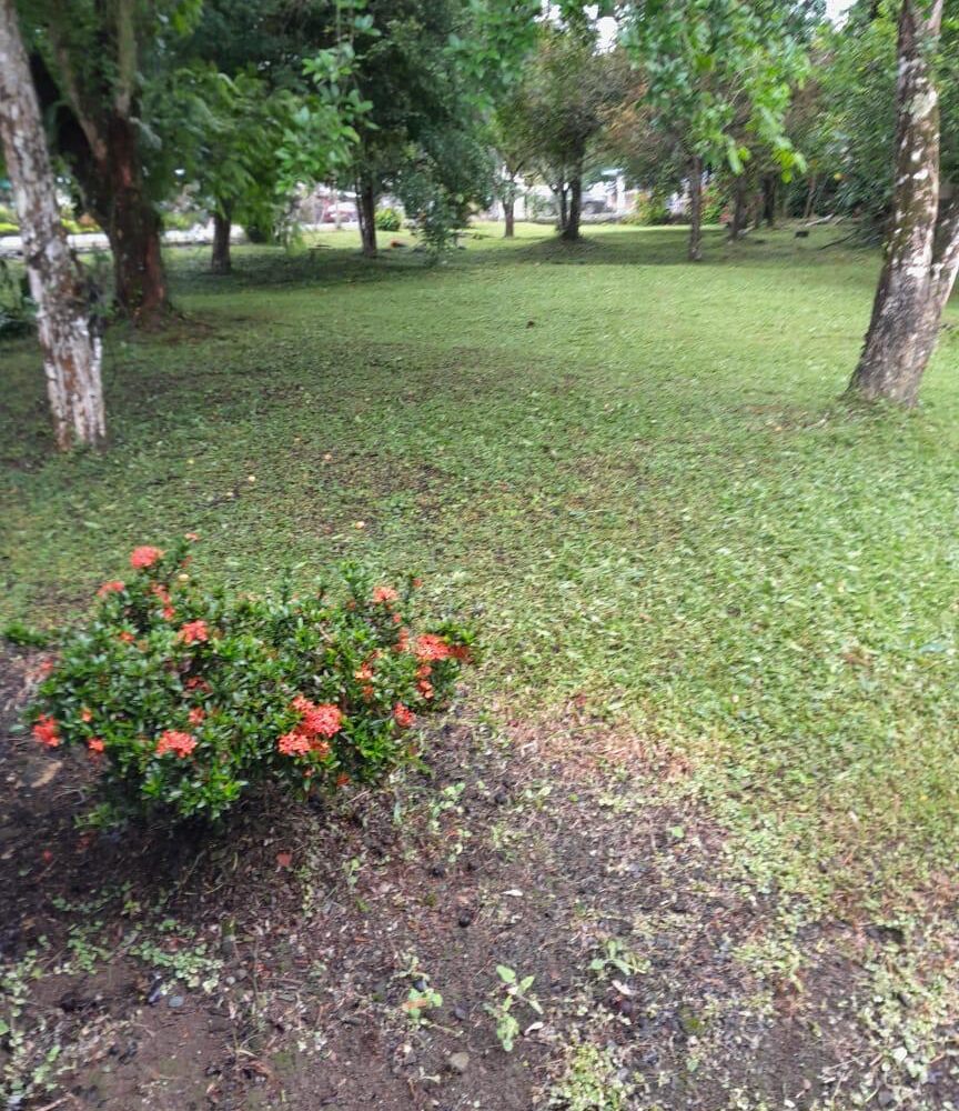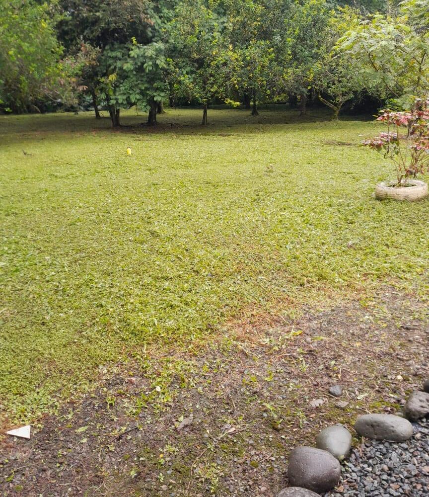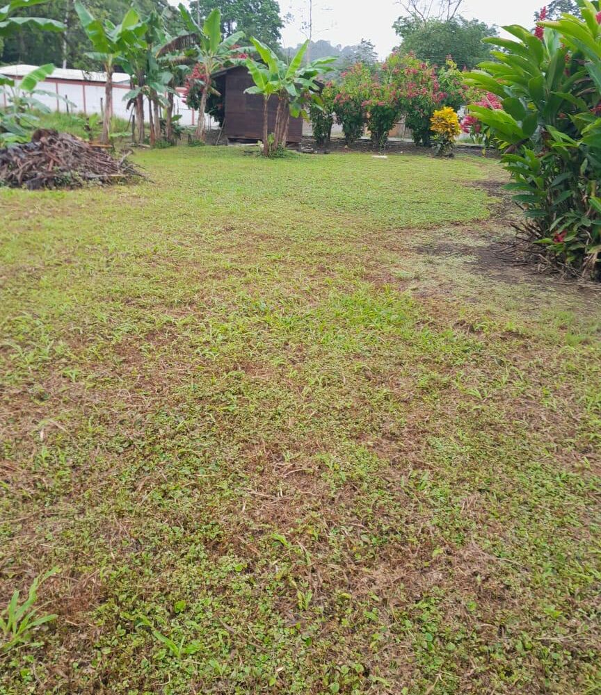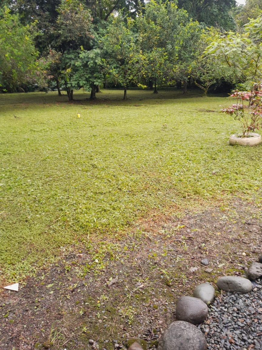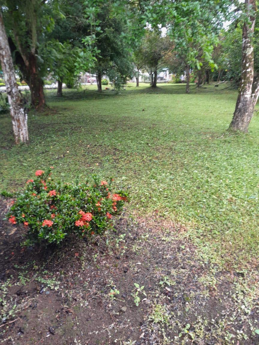 El frente se le ha dado mantenimiento, el resto es virgen , bosque y con árboles.