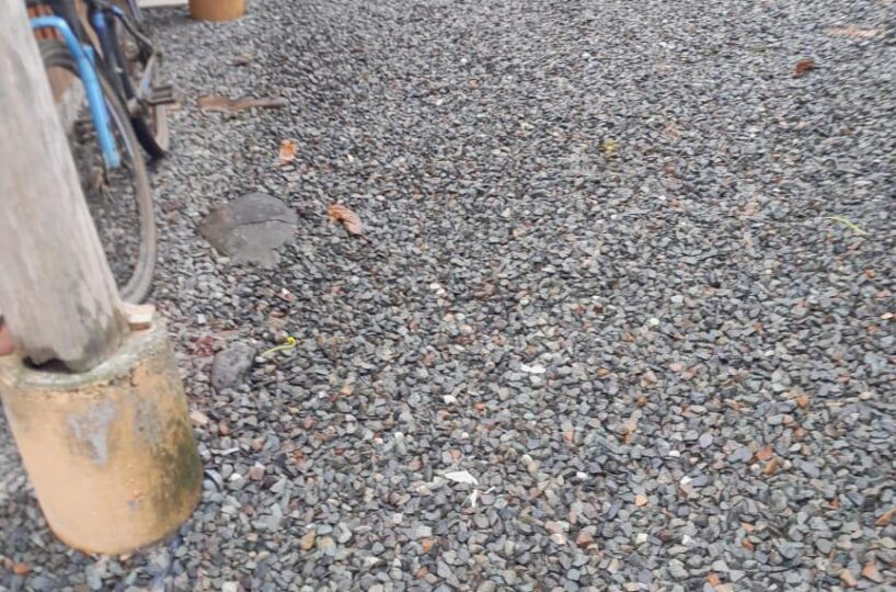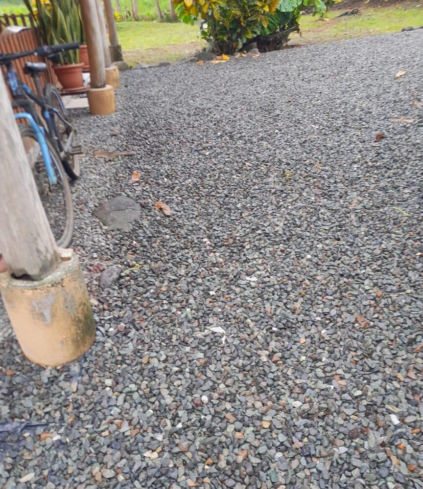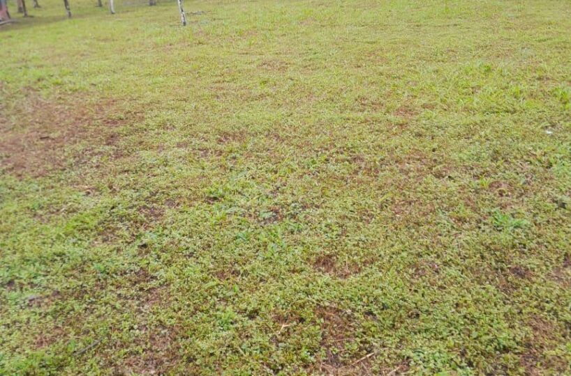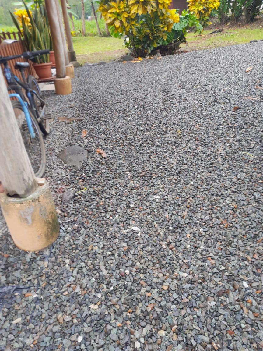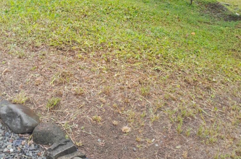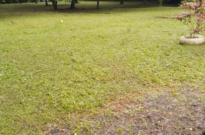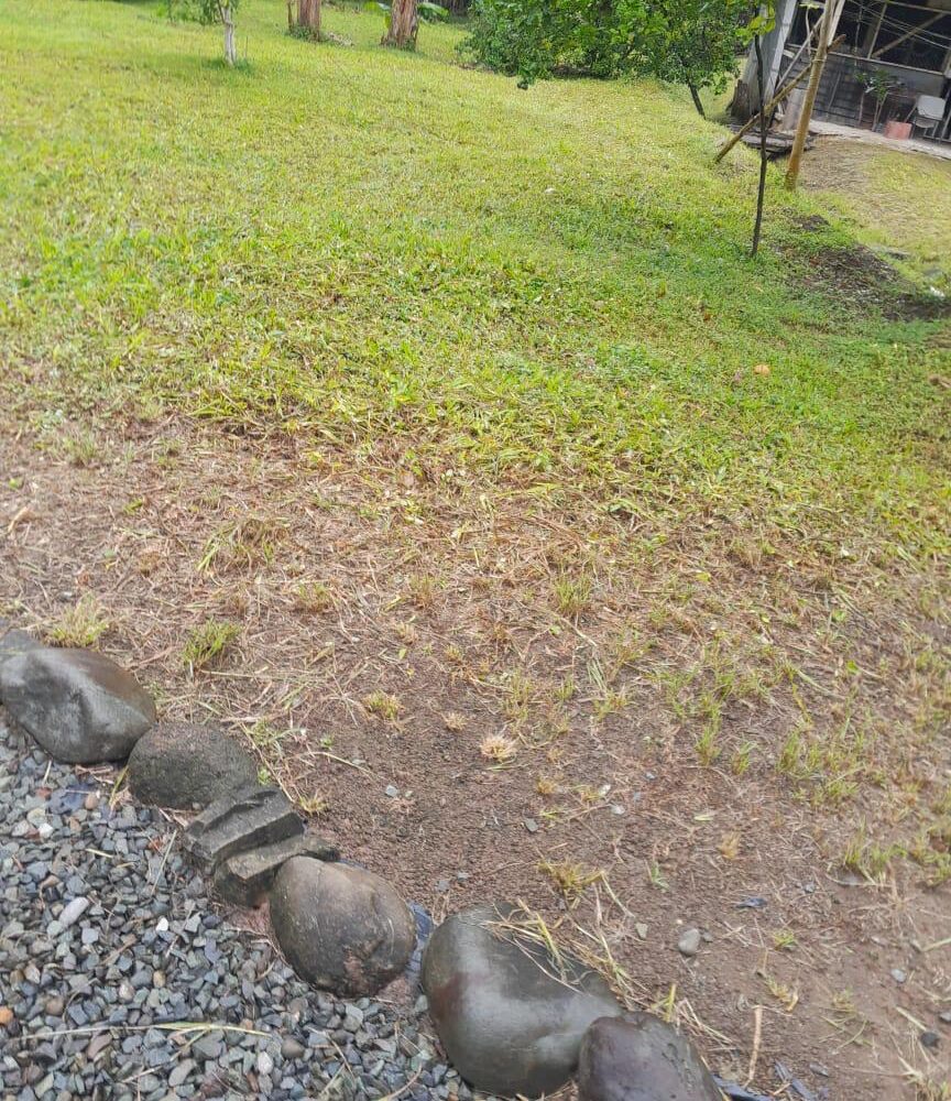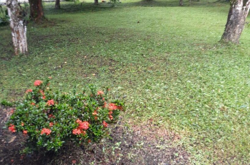 El frente se le ha dado mantenimiento, el resto es virgen , bosque y con árboles.
