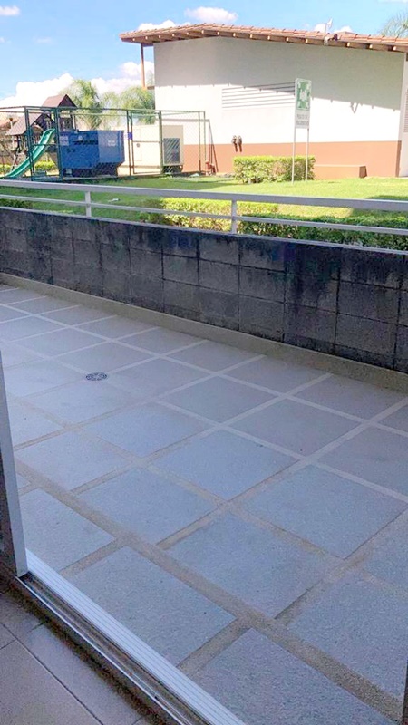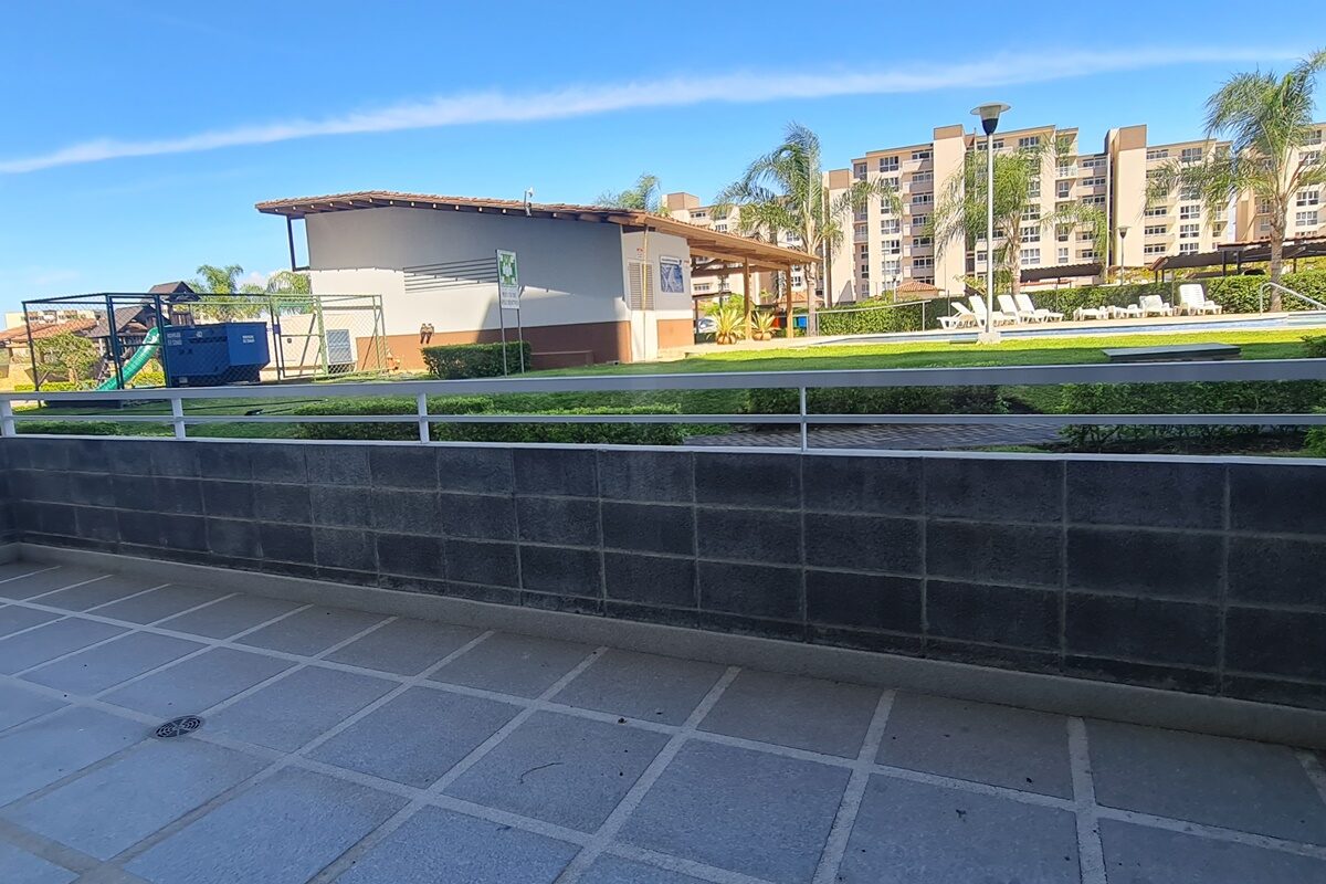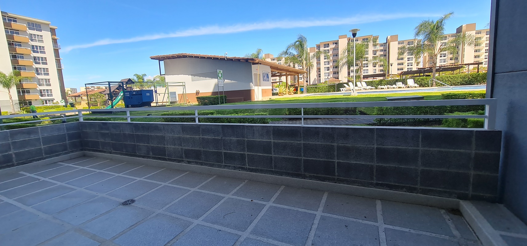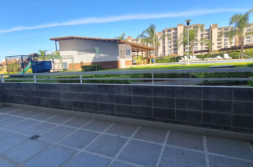 Tiene 89m2.  Una terraza espectacular con la vista hacia la piscina.