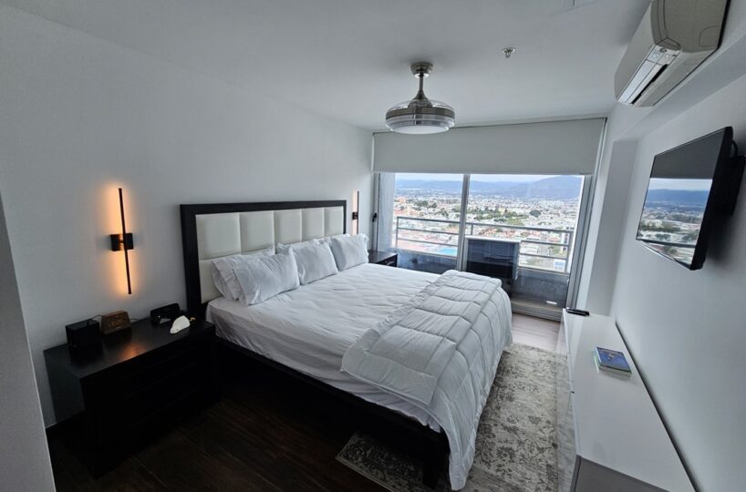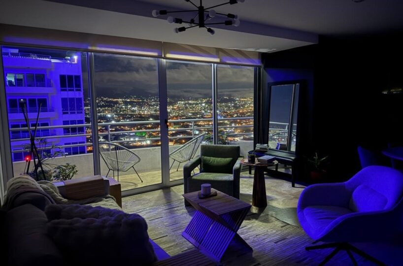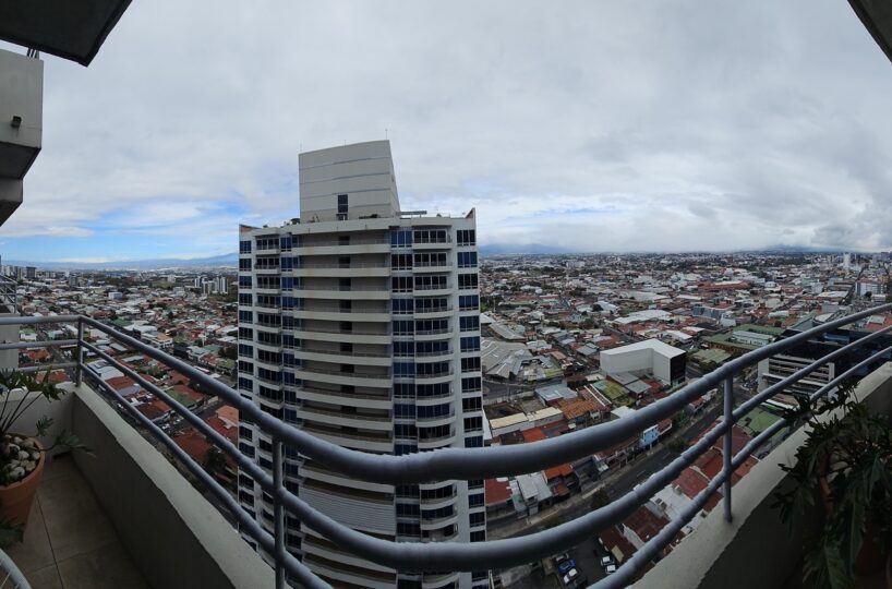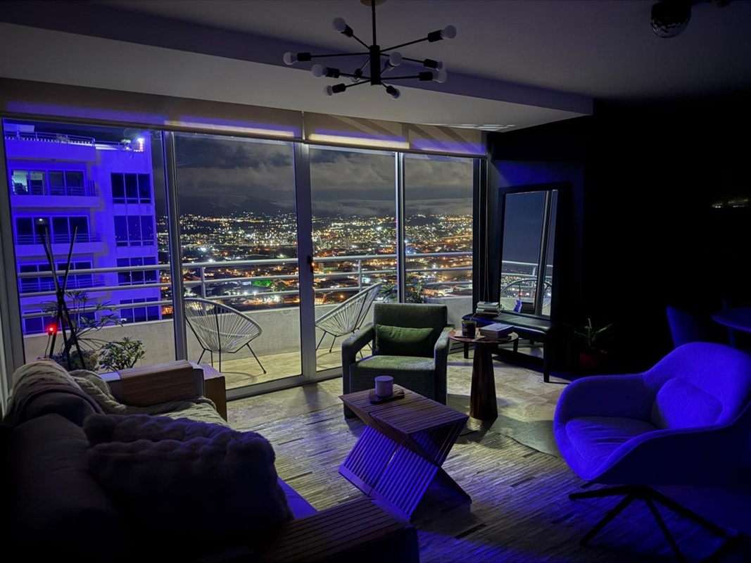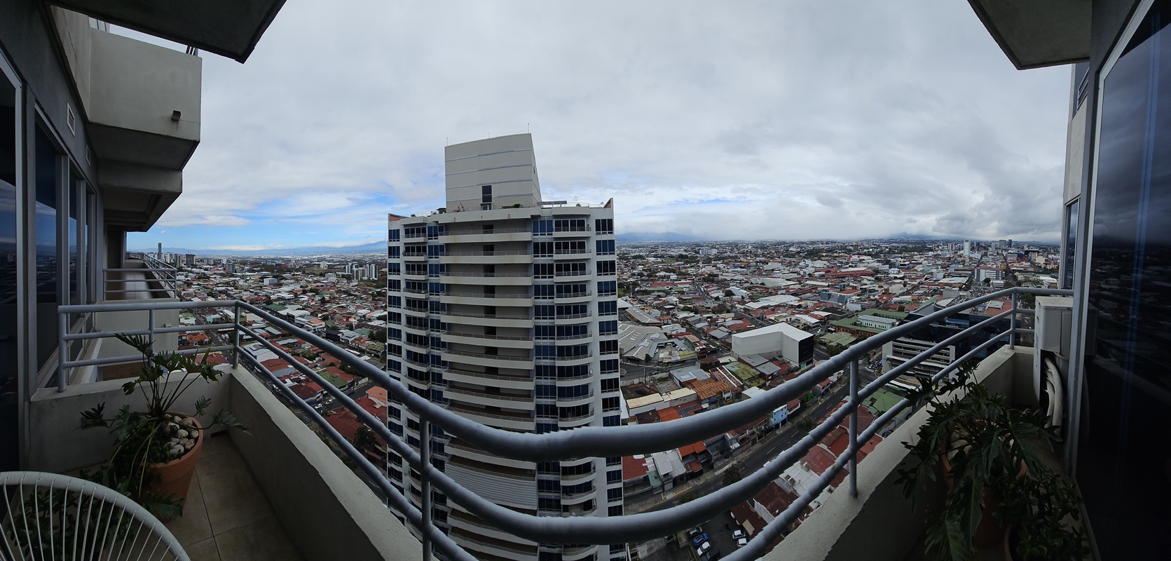 Tiene un precioso balcón de donde puedes observar las más preciosas vistas tanto de edificios vecinos con luces especiales como de las montañas.