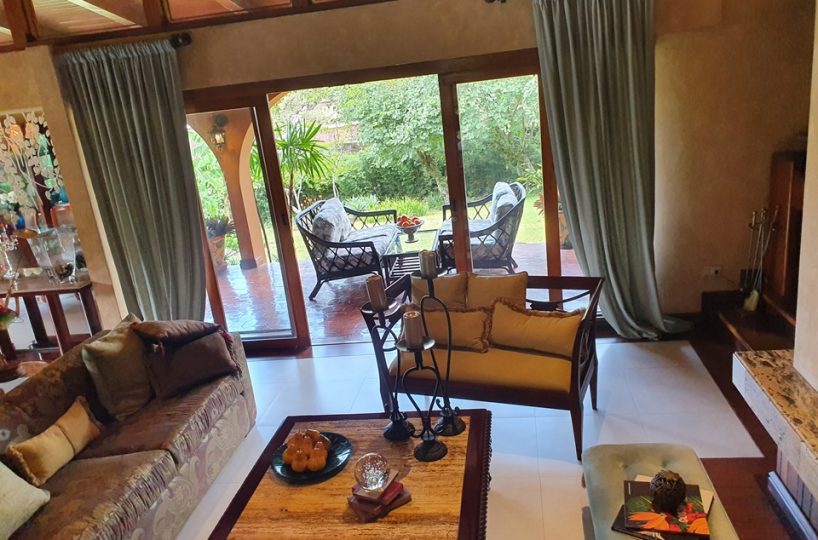 Es una hermosa casa con 8,000m2 lote y una casa de un piso con 4 dormitorios, 4,5 baños, cuarto y baño de servicio.