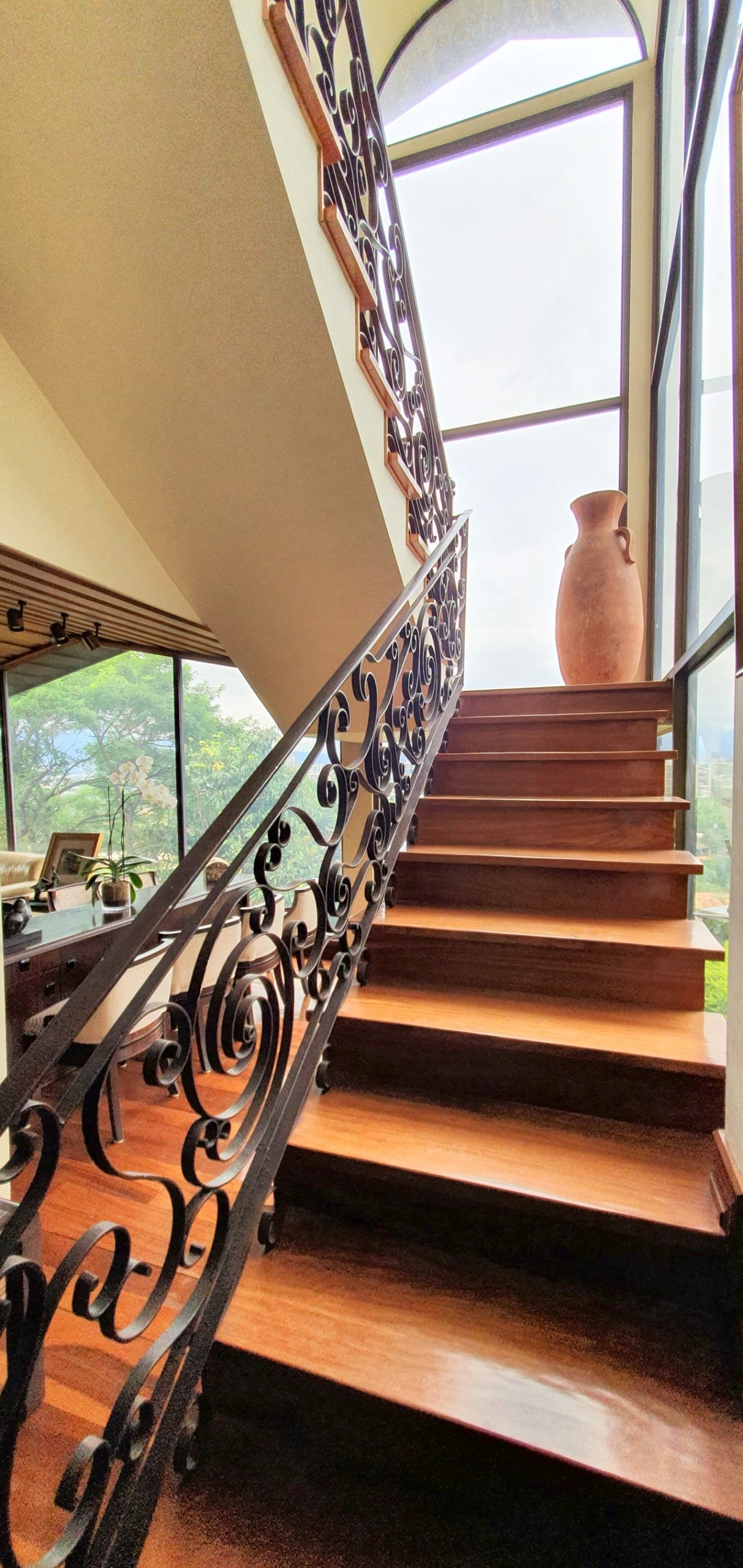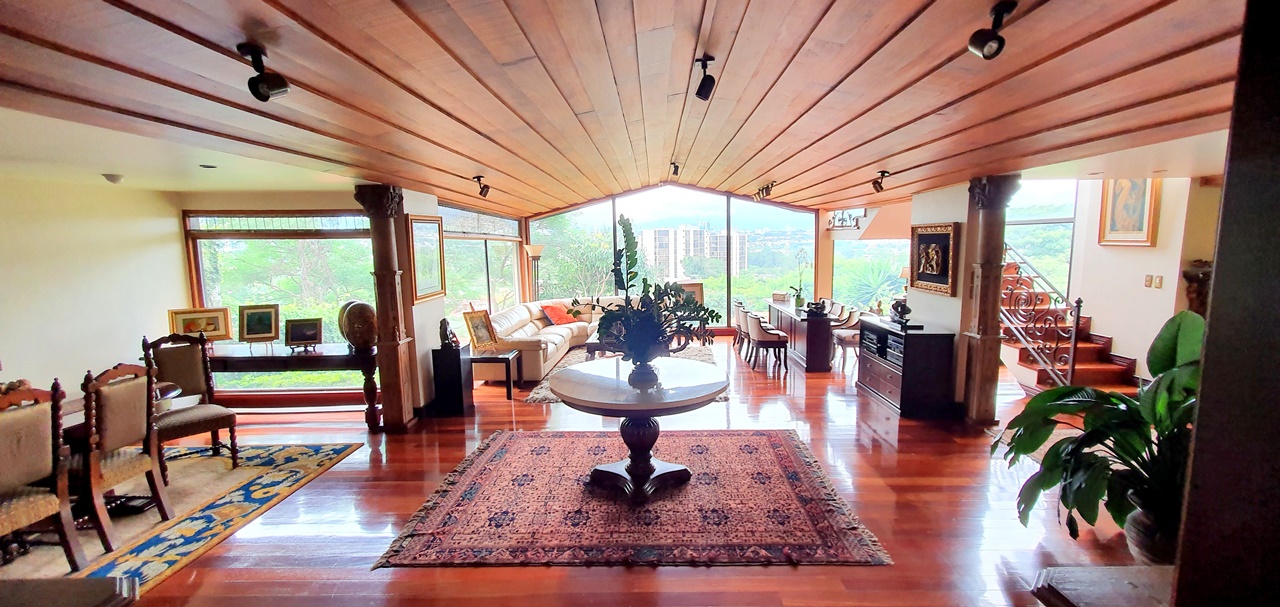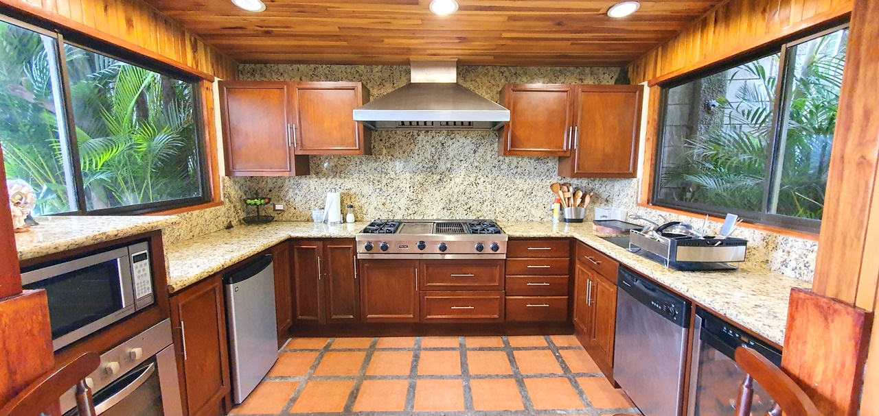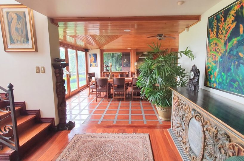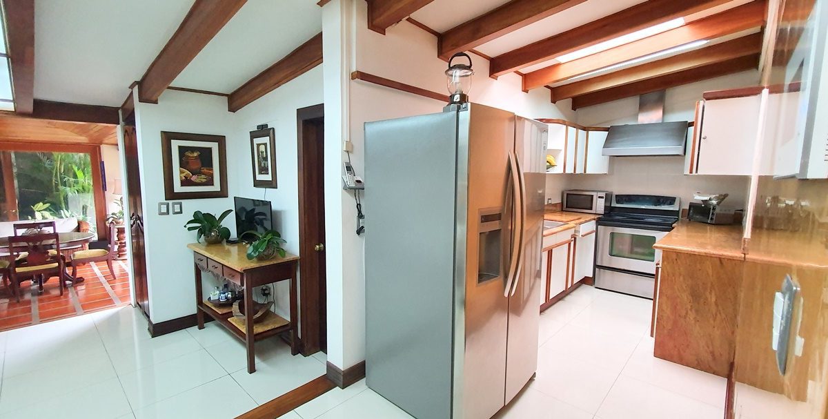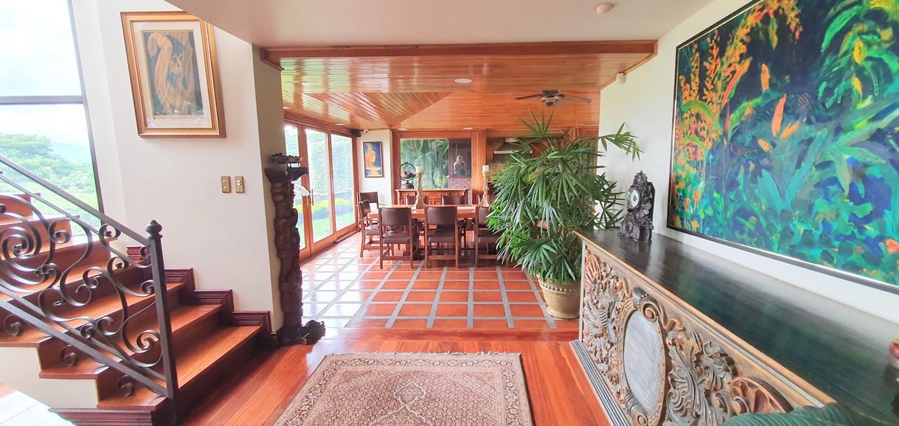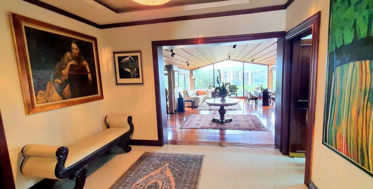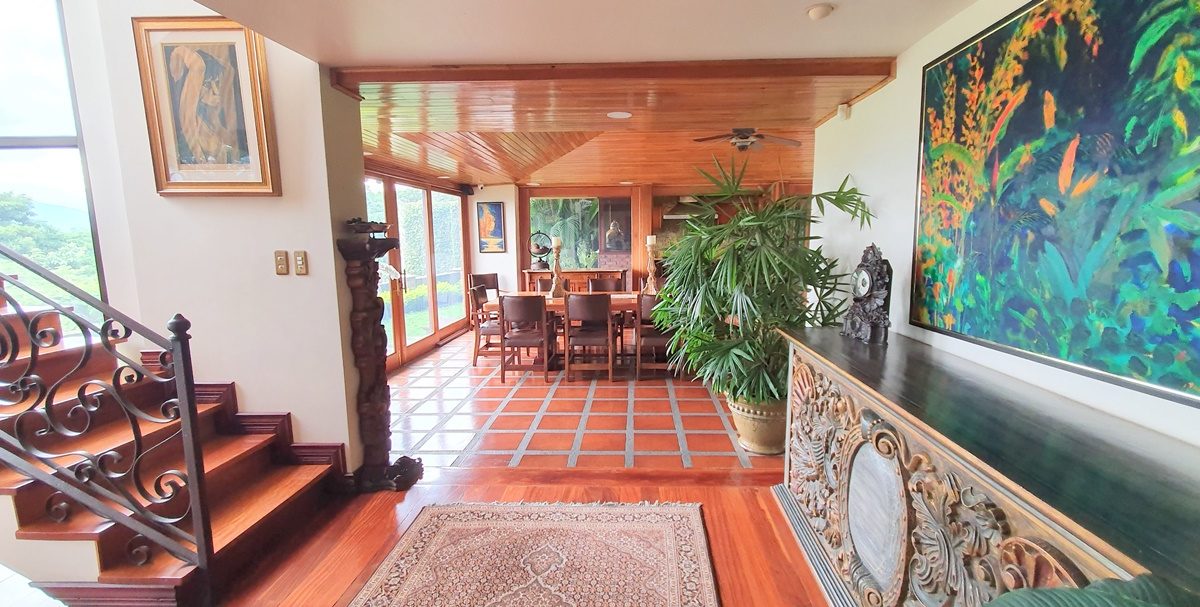 El elegante vestíbulo donde cuando estás ahí puedes observar alrededor, no solo las vistas que causan grandes emociones , sino que además la gran sala y el comedor. ¡Un gran salón y 2 cocinas con sobres de granito y gabinetes de madera! Una para la vida diaria y otro para comidas especiales. Amplia área de desayuno. Despensa.