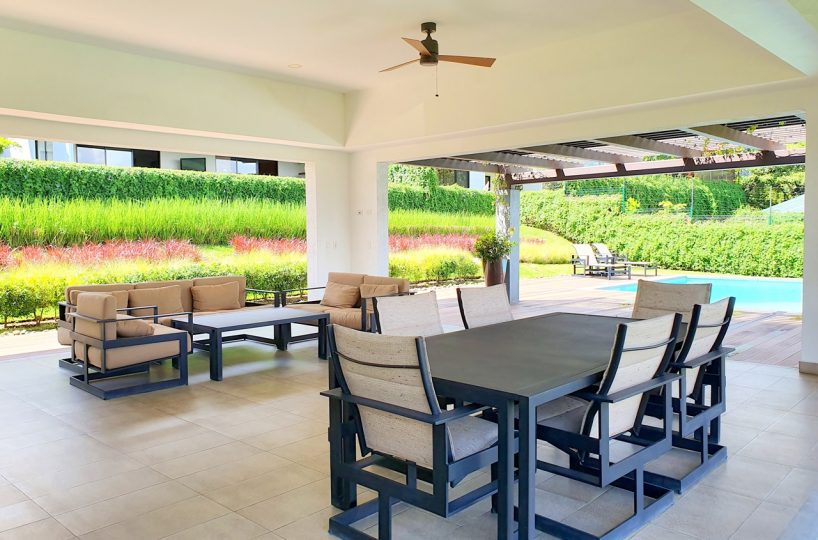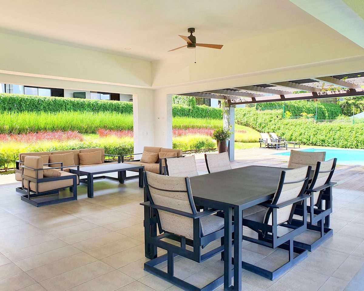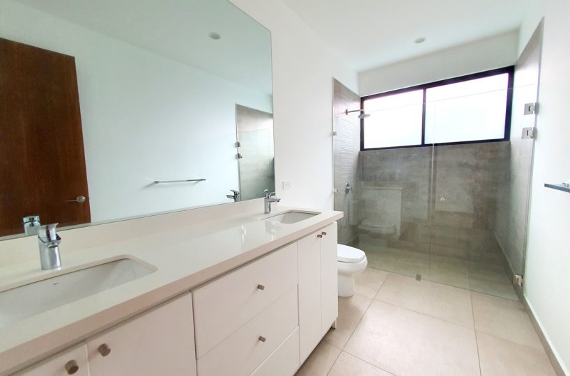 Tiene 269.23 m², 3 dormitorios, cada uno con su baño. Master con su w/closet y tiene unas puertas corredizas de vidrio que dan al lindo jardín. Baño de visitas. Amplia sala comedor y cocina integrada con muebles cubiertos de cuarzo.
