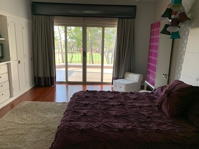 Luxury house located within an distinguished residential complex in Valle del Sol, Santa Ana, close to all amenities and amenities. The complex has 24/7 security, tennis courts and a golf court. This beautiful house has 770m2 of construction with luxury finishes and first quality materials optimally distributed on two floors, in a lot of 900m2 and is located in front of the golf course. It consists of a large and elegant social area with Turkish marble floors, a beautiful kitchen with quartz countertops and breakfast bar, large terraces and BBQ area. It also has a service room and bathroom, laundry area, enough storage space, indoor parking for 2 vehicles and 2 warehouses. AdNditionally it has 5 large bedrooms, each with A / C type mini-split (air conditioning low consumption) and 5 full bathrooms, living room with Home Theater. It offers a beautiful and impeccable garden with automatic irrigation system, pool and jacuzzi.