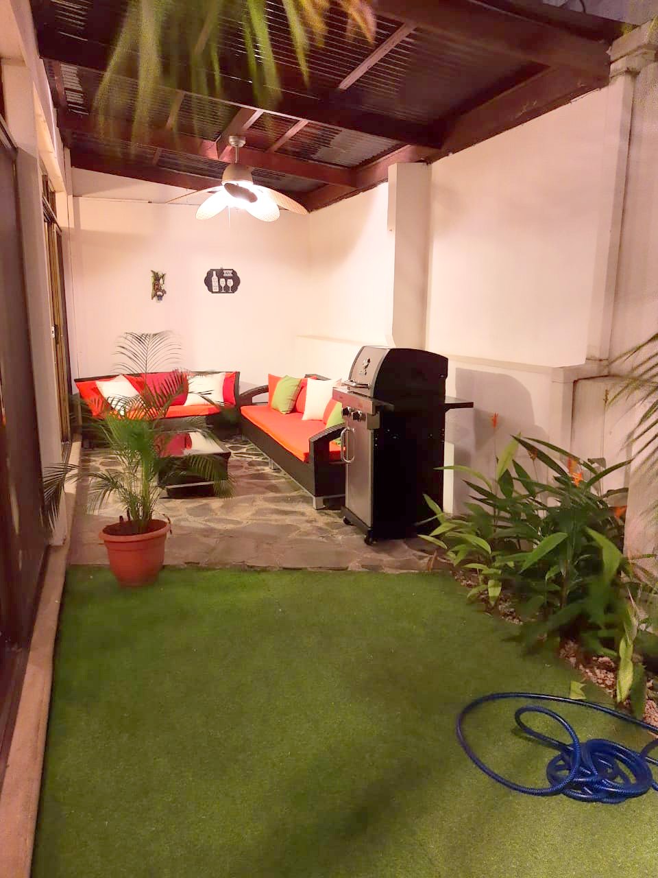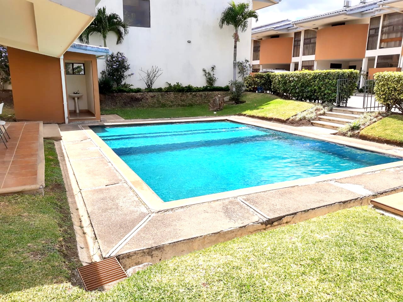 Area común que incluye piscina y rancho para fiestas. Ademas seguridad 24 horas.