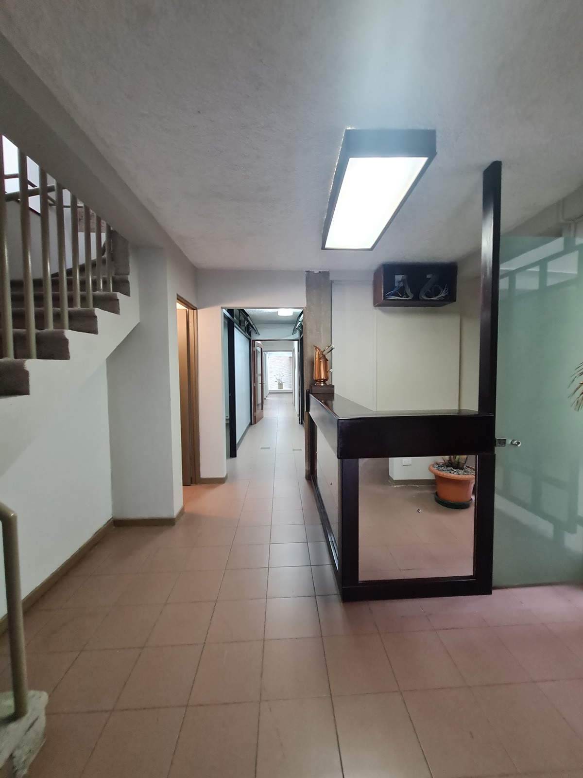 On the second floor there are 8 offices, a reception, conference room and 3 bathrooms as well as a small solarium to use with plants .Beautiful common spaces that give a great enhancement to the place and other items and rest areas that also add beauty to the place.